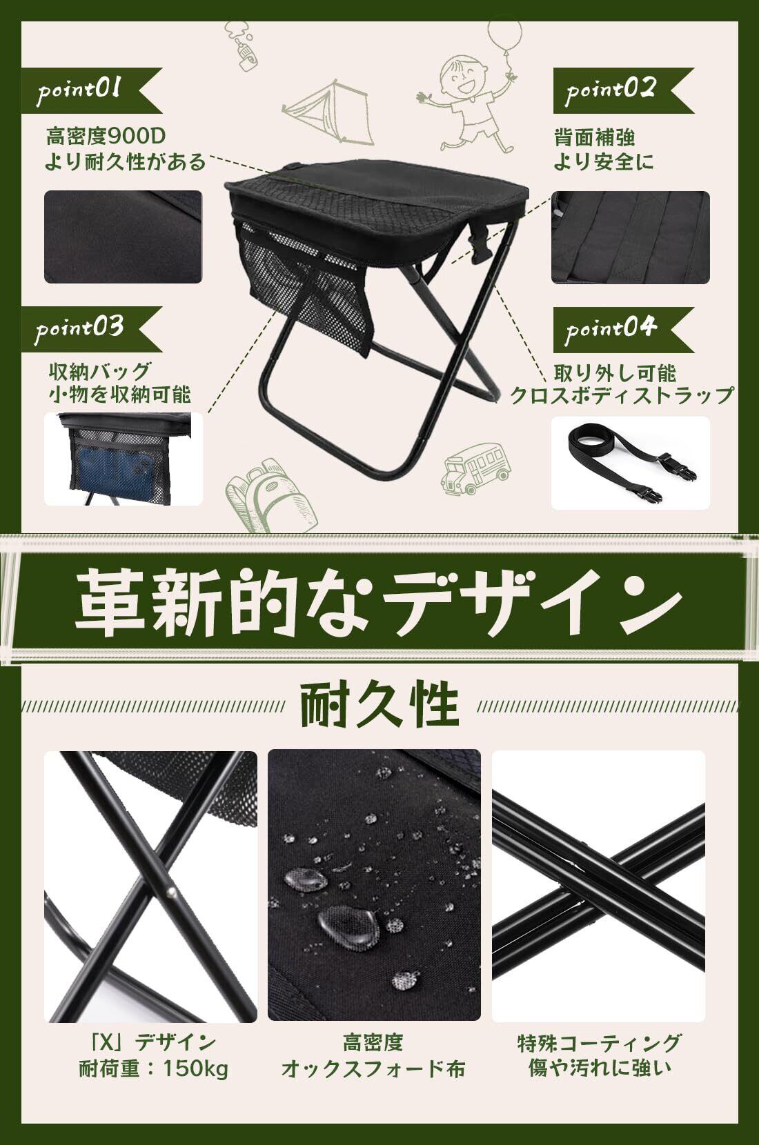 ️【追加の収納バッグ機能】基本モデルと比較して、このモデル 折りたたみ椅子 は革新的な収納バッグを追加し、小物の収納に便利です。
