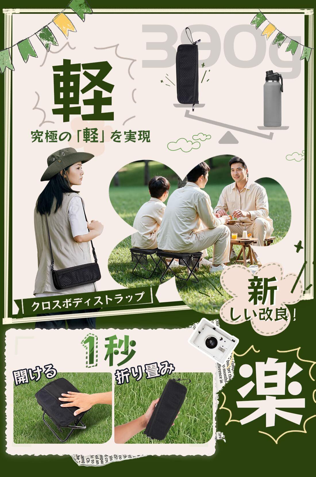 ️【便利で軽量なデザイン】この折りたたみ椅子 コンパクトの重さはわずか390gで、水筒よりも軽いです。フレームは7075アルミニウム合金製で、超軽量で120KGまで耐えられます。折りたたみ傘のようにコンパクトで使いやすいです。この折りたたみ椅子 アウトドアの収納サイズはわずか28×11cmで、持ち運びに便利です。折りたたみ椅子 軽量 持ち運びは軽量で持ち運びやすく、アウトドア活動向けに設計されています。アップグレード版には、ハイキングの際の持ち運びに便利な新しい取り外し可能なショルダーストラップが装備されています。脚チューブは特殊な技術を採用し、表面保護が強化され、耐久性、耐水性、耐光性が大幅に向上しています。