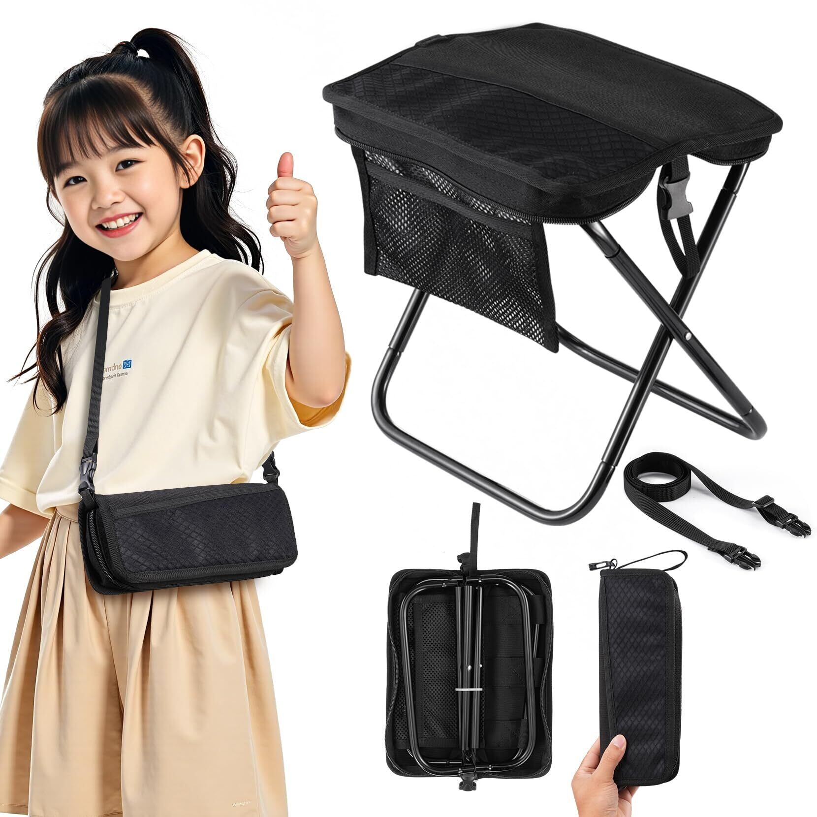 【2025 NEW 折りたたみ椅子】 折りたたみいす 小型 軽量 持ち運び コンパクト 収納袋一体 折り畳み椅子 調節可能なショルダーストラップ付き キャンプ より安定 アウトドア、 チェア 簡易アウトドア チェア お花見、 軽量 釣り 持ち運び 小型 説明書付 ブラック