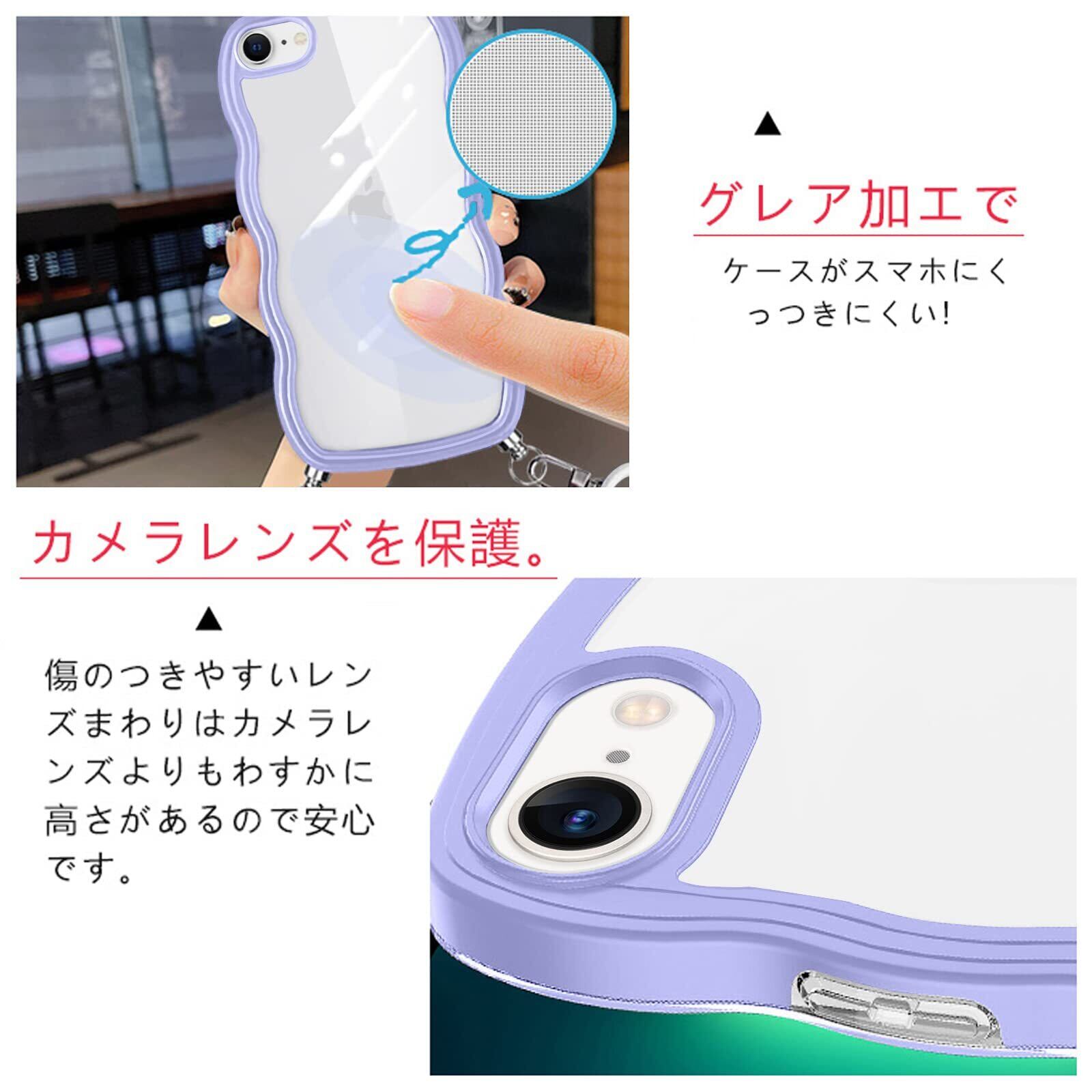 iPhone SE3 SE2 用の ケース ショルダー クリア SE 第3世代 第2世代 iPhone8 iPhone7 カバー スマホケース 創意 個性 肩掛け 首掛け 斜めかけケース 可愛い かわいい 韓国 透明 TPU 薄型 耐衝撃 アイフォンSE3/SE2/8/7(パープル)