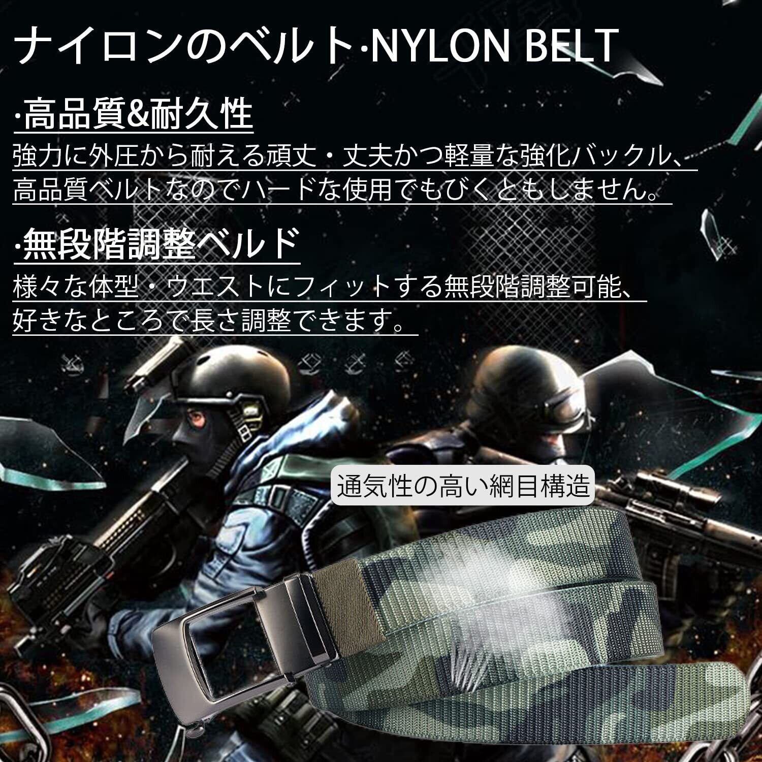 [Sunhel] ナイロンベルト 自衛隊 作業/仕事/登山用 メンズ 無段階調節 120cm おおきいサイズ 編み込み スポーツ ミリタリー旅行 男性用