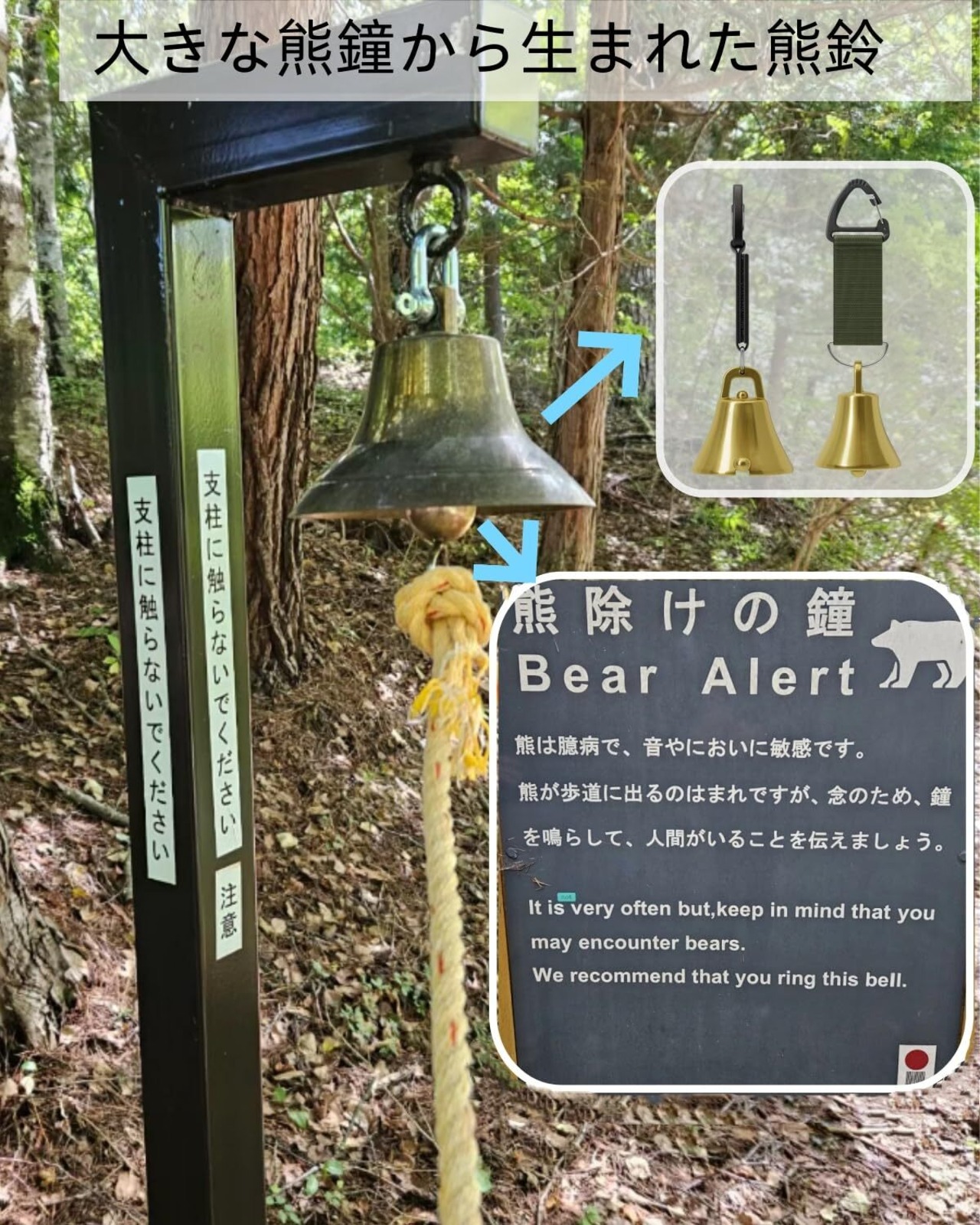 【山のアクシデントに備える】 真鍮鋳物の熊ベルなので高音帯の音色が遠くまで響きます。山歩きのアクシデントに「備える」ベルです。渓流の音にかき消されにくく、より遠くまで響いて自分の居場所を音で知らせ、熊よけや遭難防止に役立ちます。