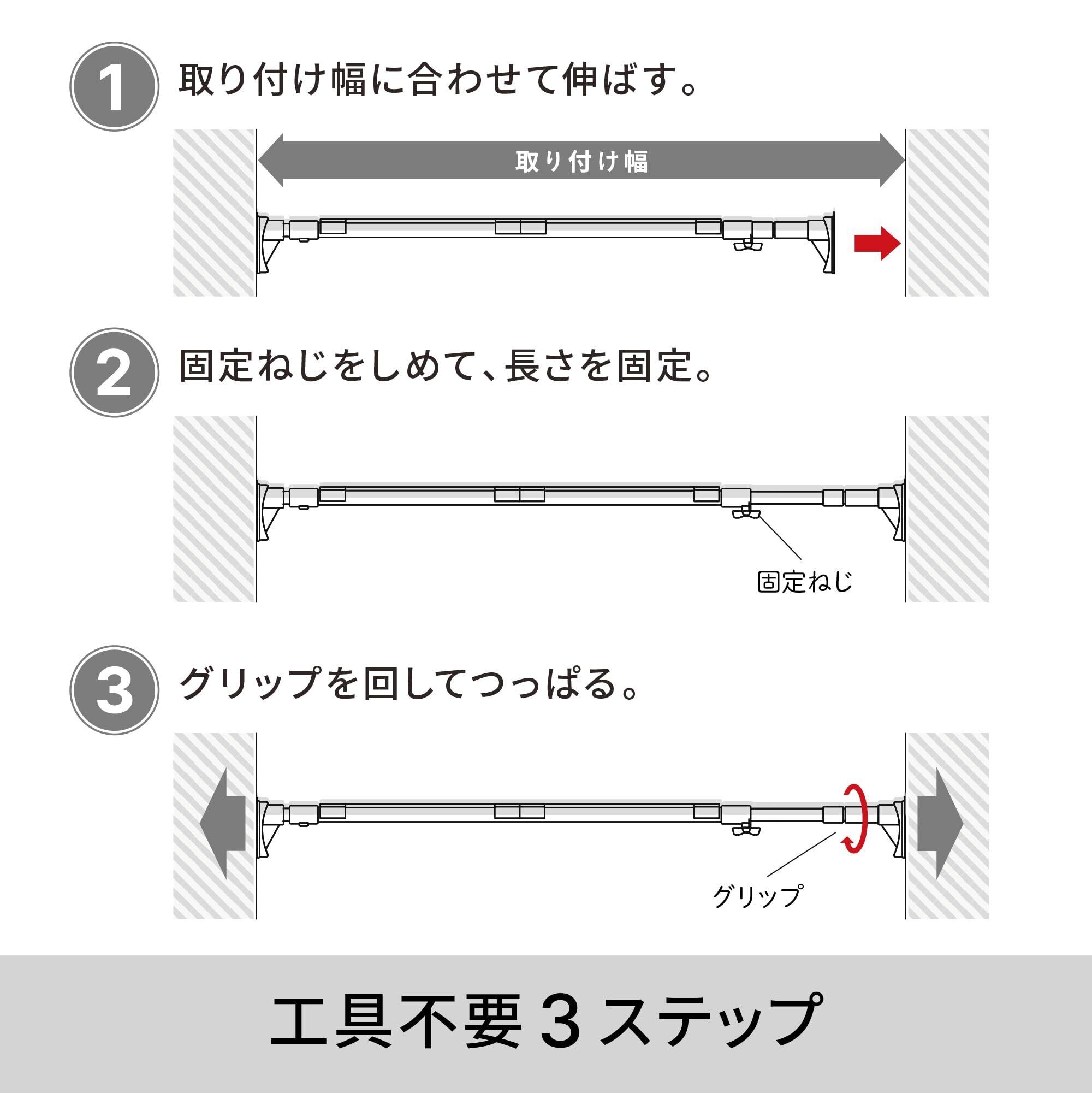 取付けた後も、スライド部分を伸ばして収納スペースを増やせる。押入れやクローゼットなど、広い空間にも。