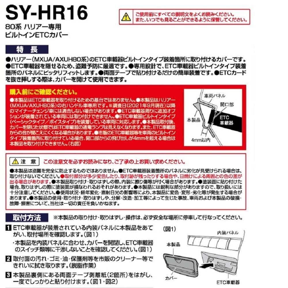 槌屋ヤック(Tsuchiya Yac) 車種専用品 トヨタ 80系 ハリアー専用 ビルトイン ETCカバー ブラック 180×100×50mm SY-HR16