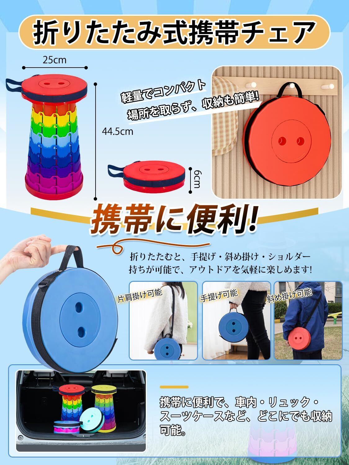 【さまざまな場面で使用可能】この椅子は、キャンプ、ハイキング、釣り、旅行など、さまざまな屋外活動で大いに役立ちます。また、日常生活にも非常に便利です。運動会、お花見、庭仕事、家庭菜園、屋外でのバーベキューやパーティーなどにも最適です。
