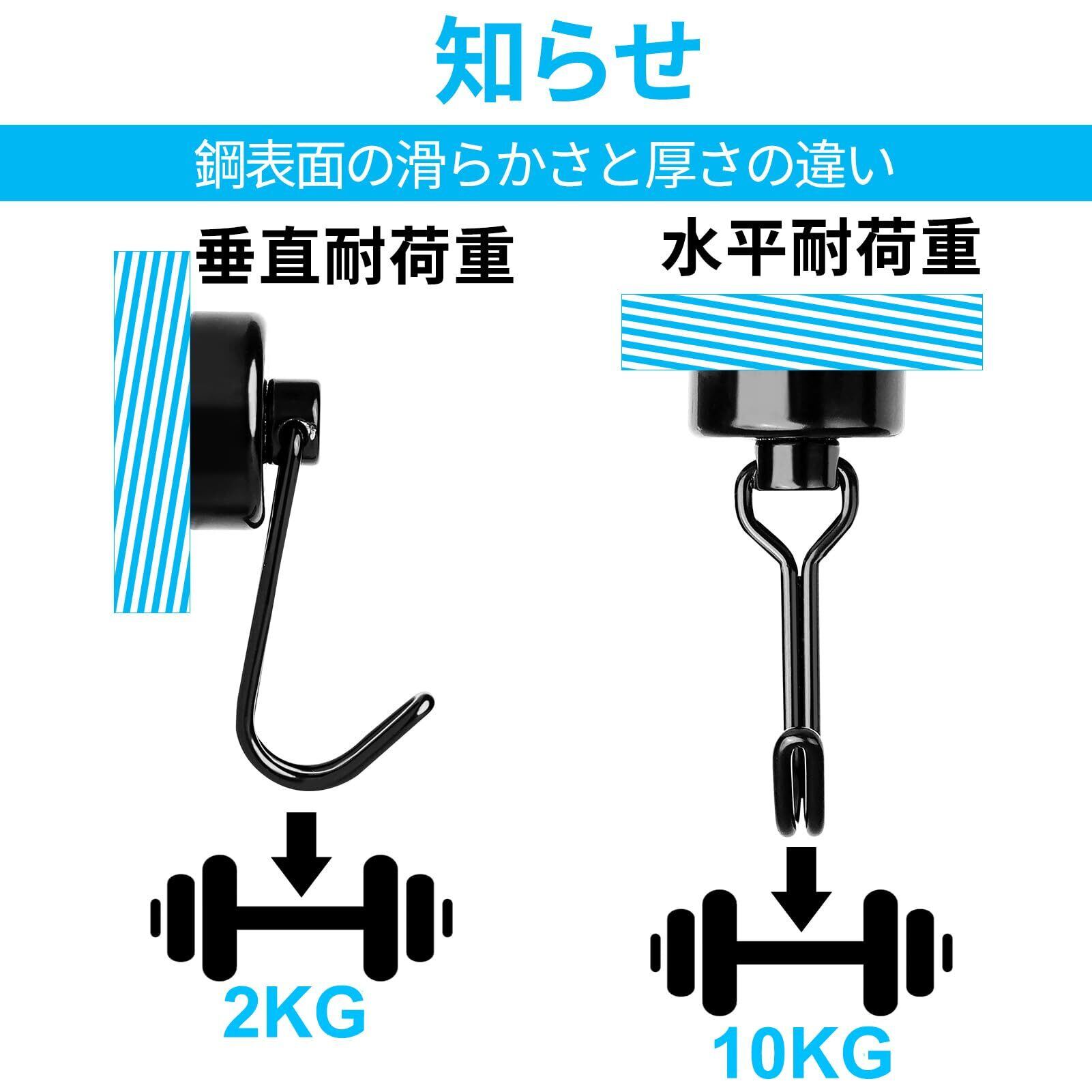 【超強力な永久磁力】超強力磁石を搭載したことで、垂直方向耐荷重最大15kg、水平方向耐荷重最大3kgまで、様々な物を吊下げるのが可能です
