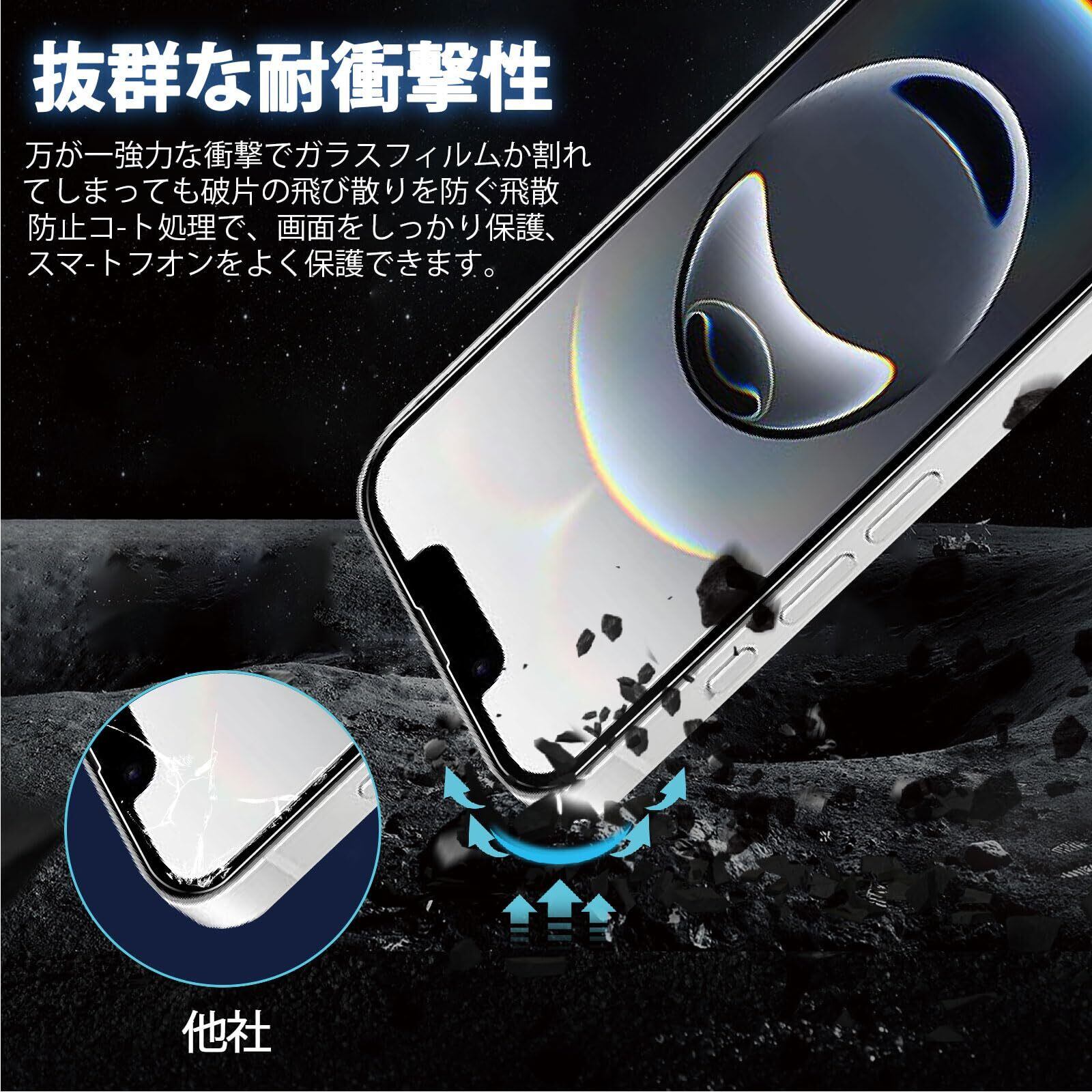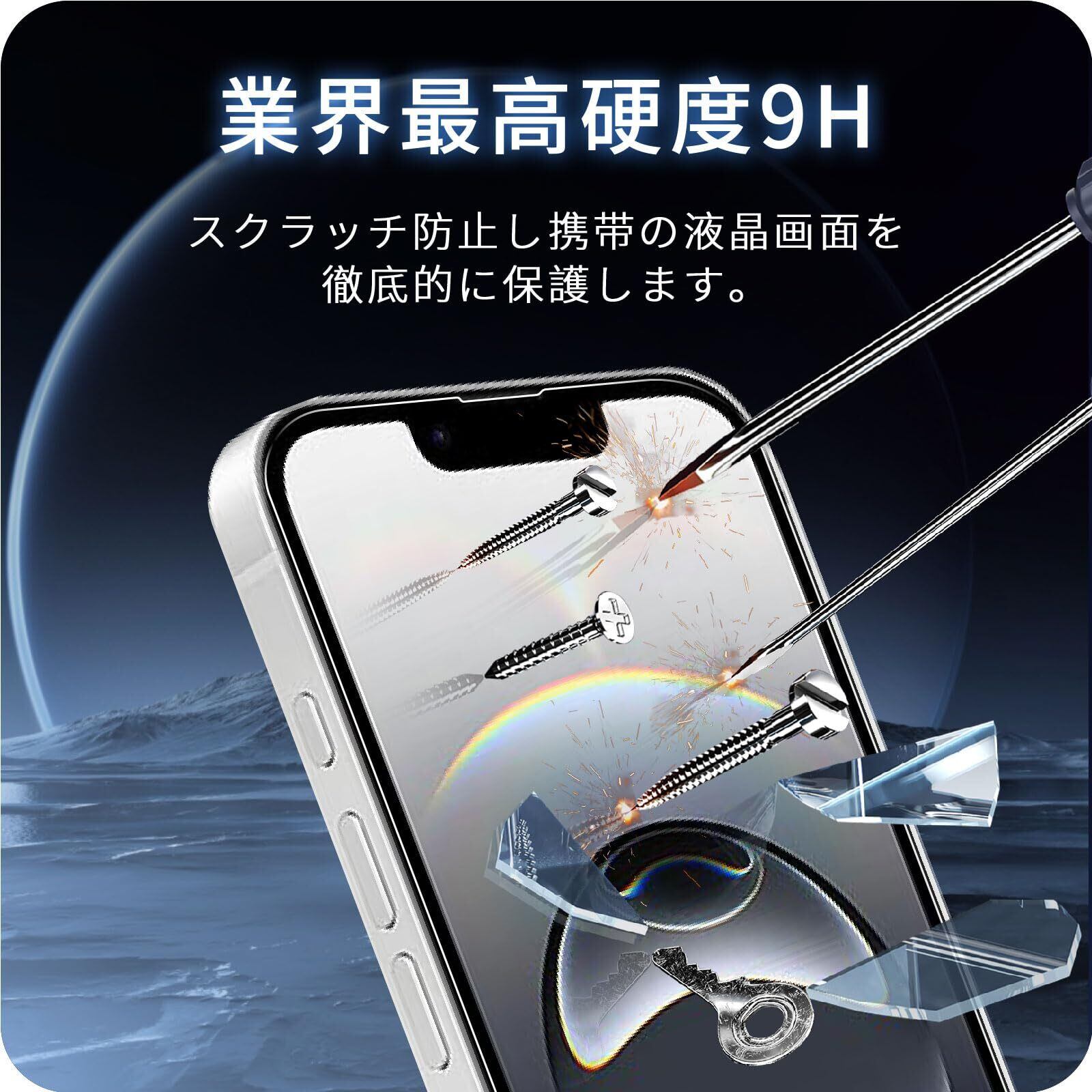 【9H硬度・飛散防止】旭硝子製ガラス素材採用 最上級強度のガラスを使用し表面硬度は9H。万が一の破損時も、飛散防止加工によって破片が飛び散ることがなく安全です。