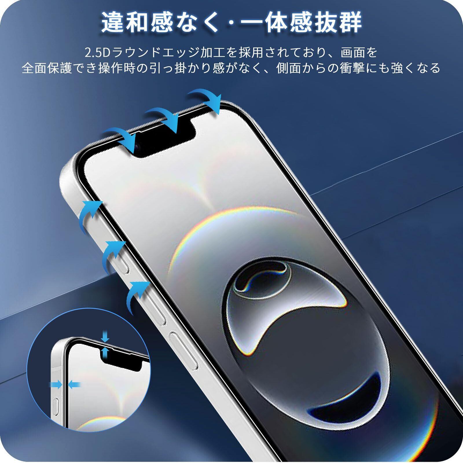 【高透過率99%】透き通ったガラスフィルムに多層フィルタフィルムを採用し、素晴らしい透明度を確保して、一体感になって、本来の美しい画面を鮮明に保ち続けます。また、2.5Dラウンドエッジ加工により、どんなケースにも干渉せずに、しっくり指になじみます。