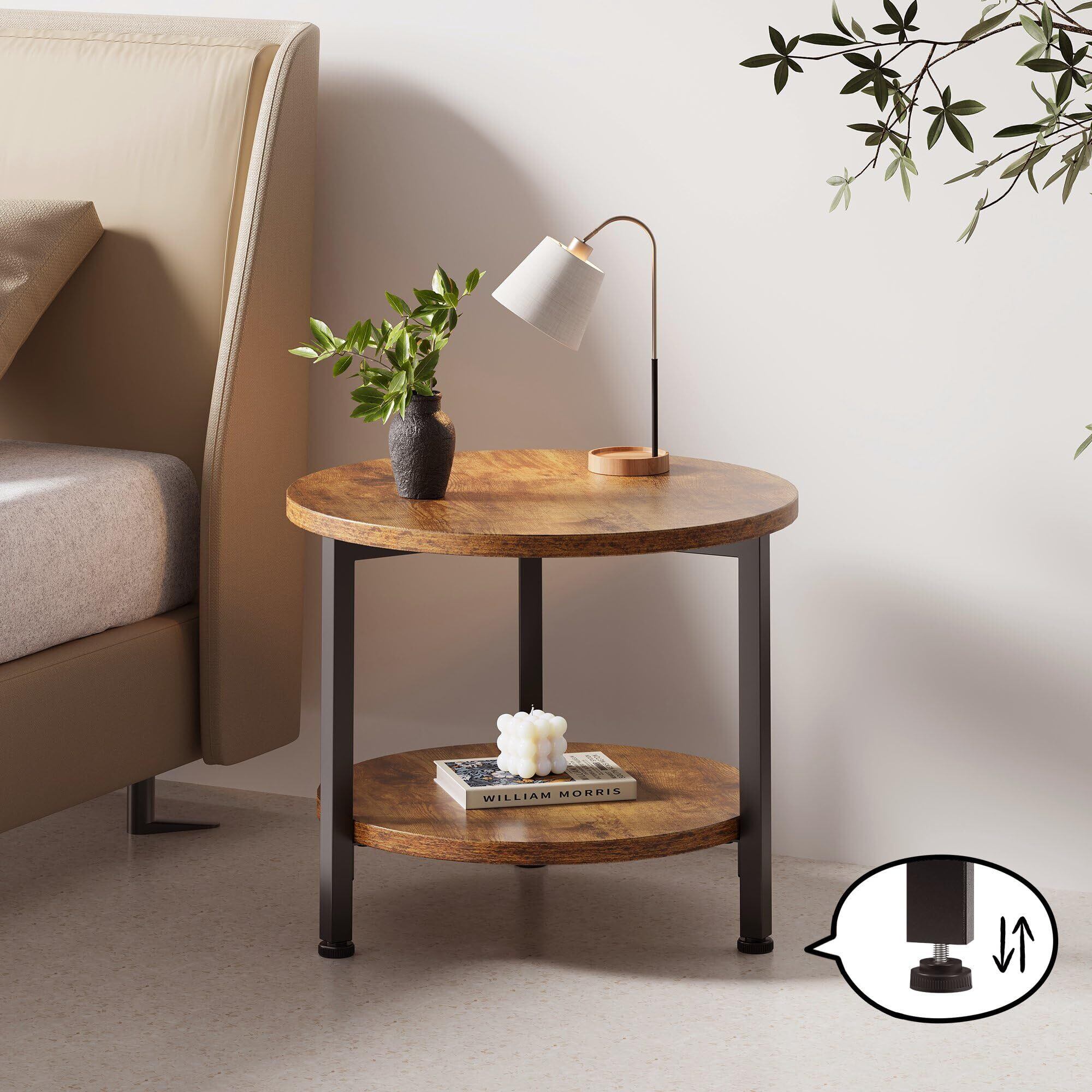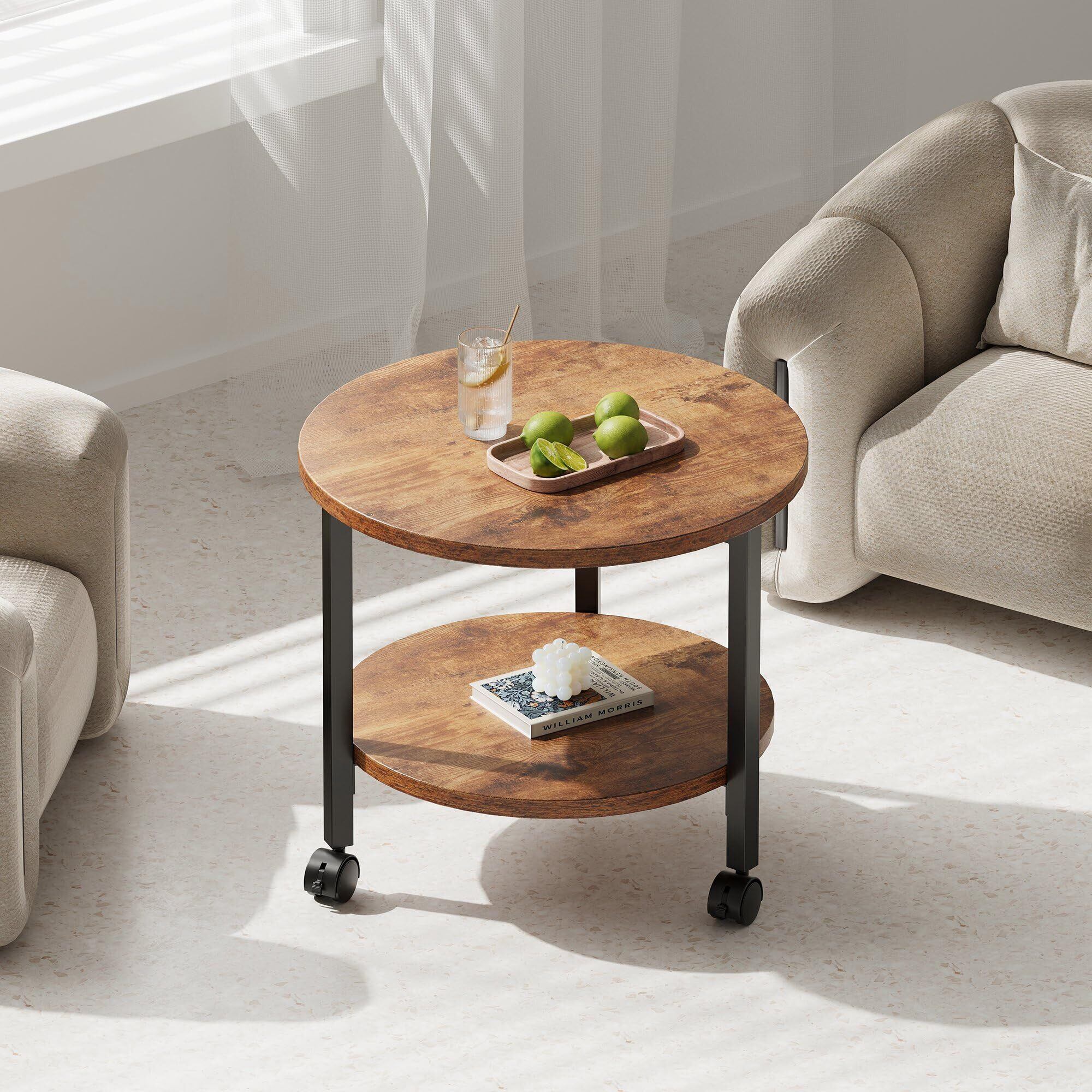 YeTom サイドテーブル キャスター付き ベッドサイドテーブル ナイトテーブル 丸 幅33*33*44cm (キャスター約5cm)ビンテージ