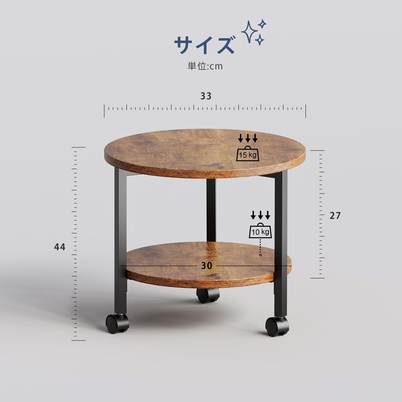 製品仕様:ホイール付きのサイズ:33*33*44cm,净重约2.2kg,承重约为:25kg。※ご注意※お客様組立商品。お買い上げ日より、1年の安心保証を提供いたします。何か問題があれば、遠慮なく弊社へご連絡願います。