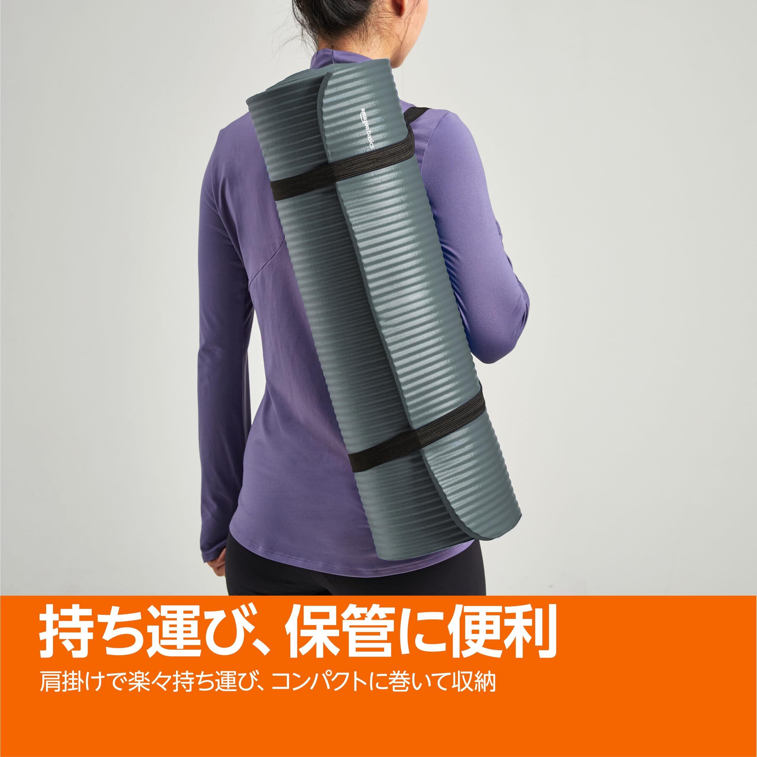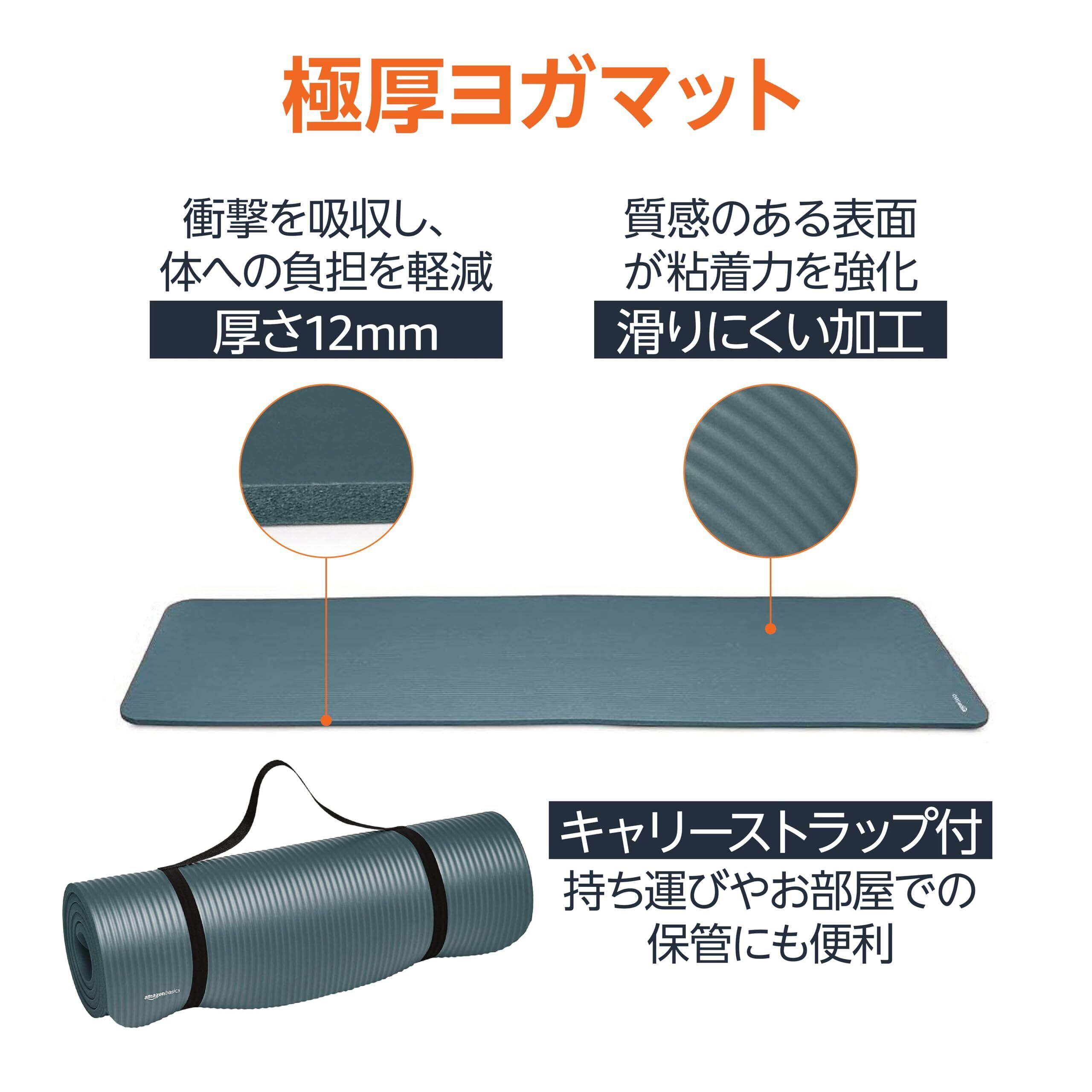 Amazonベーシック ヨガマット 厚め 12mm キャリーストラップ付 トレーニングマット ストレッチマット ピラティスマット 188×61×1.2cm シアン