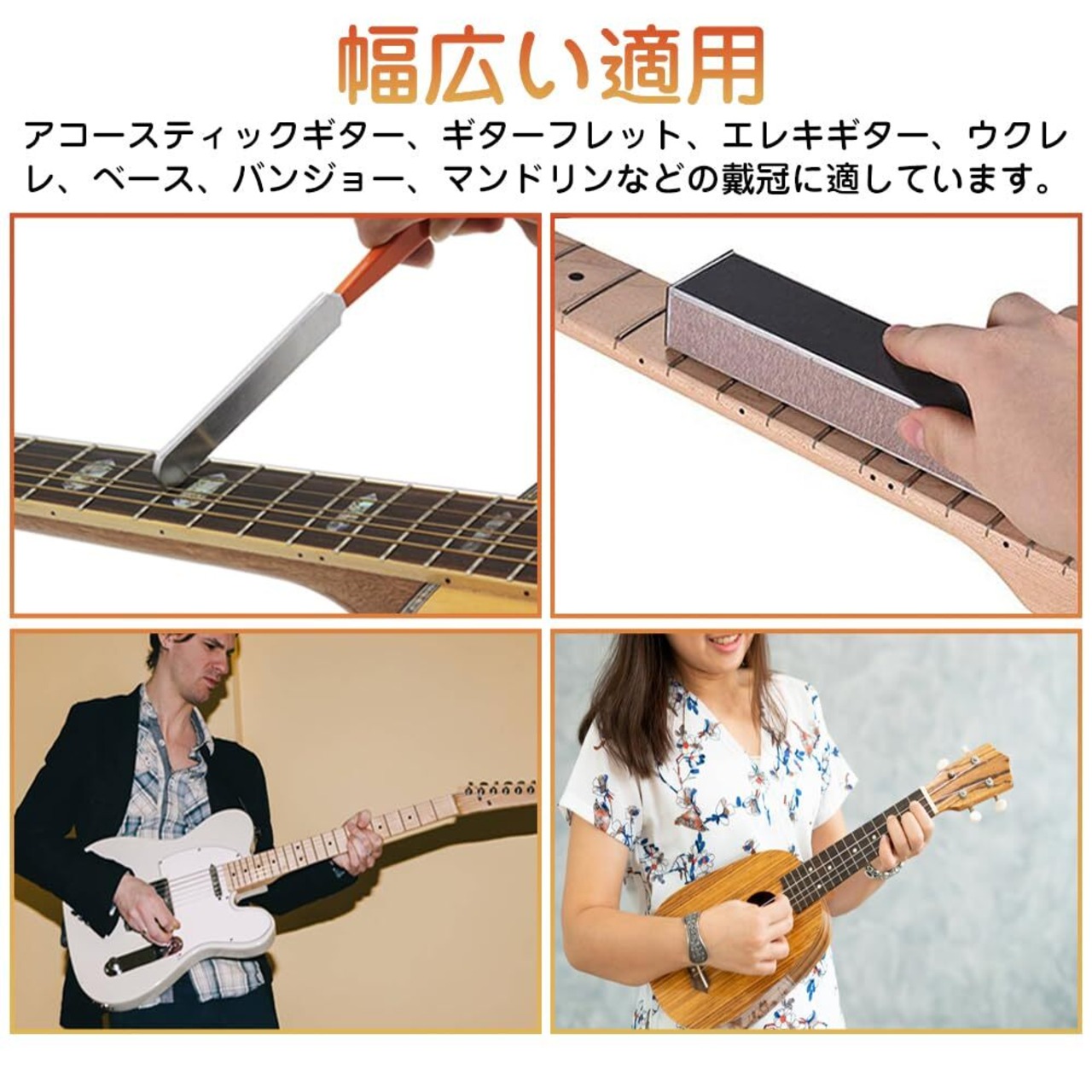 幅広い適用:アコースティックギター、ギターフレット、エレキギター、ウクレレ、ベース、バンジョー、マンドリンなどの戴冠に適しています。