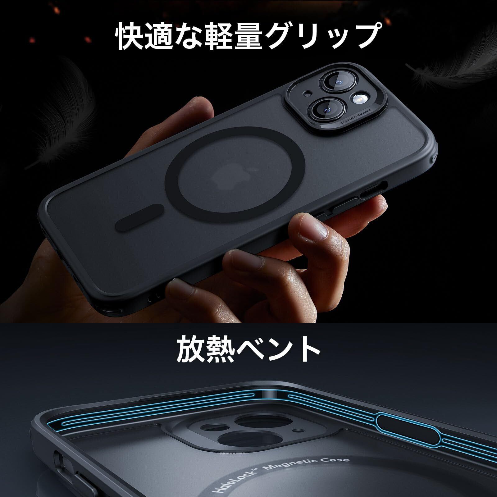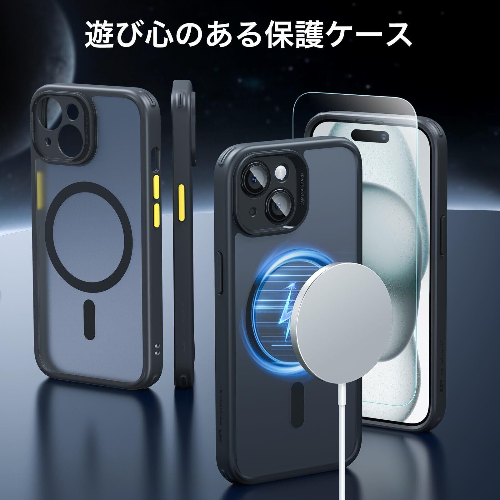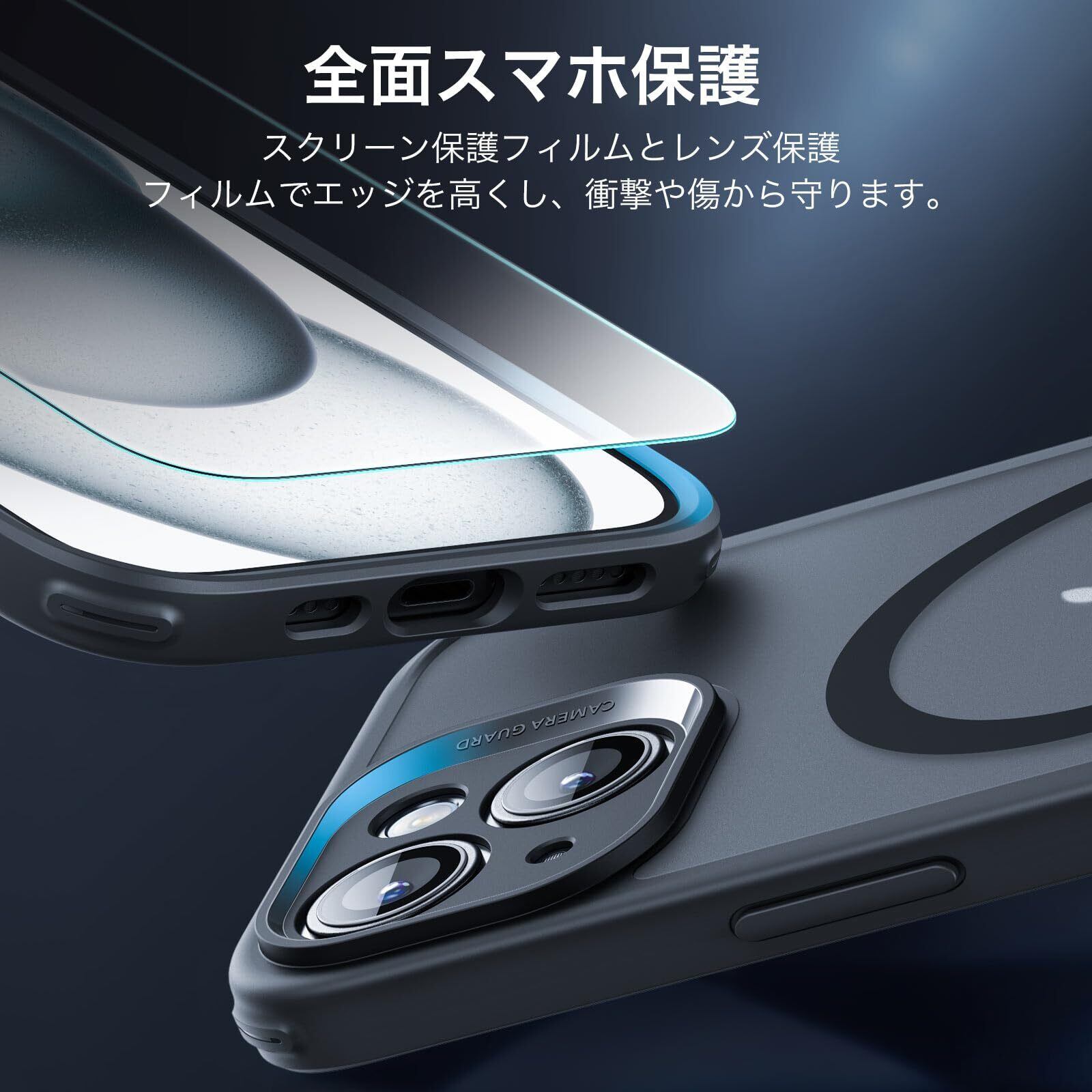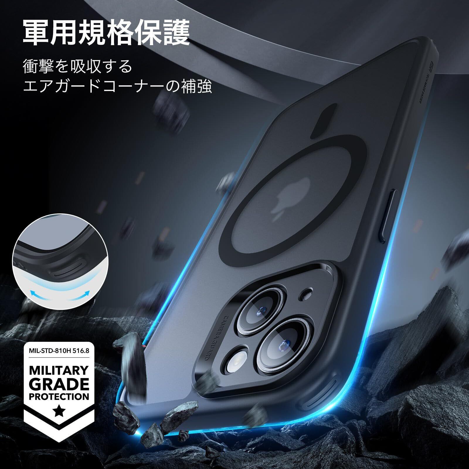 ESR iPhone 15 ケース【Magsafe対応・米軍規格】 iPhone15ケース 耐衝撃 傷防止 【強化フィルム付き】耐黄変 傷に強い背面 iPhone 15 対応 指紋防止 薄くて肌に優しいデザイン 半透明 フロストブラック