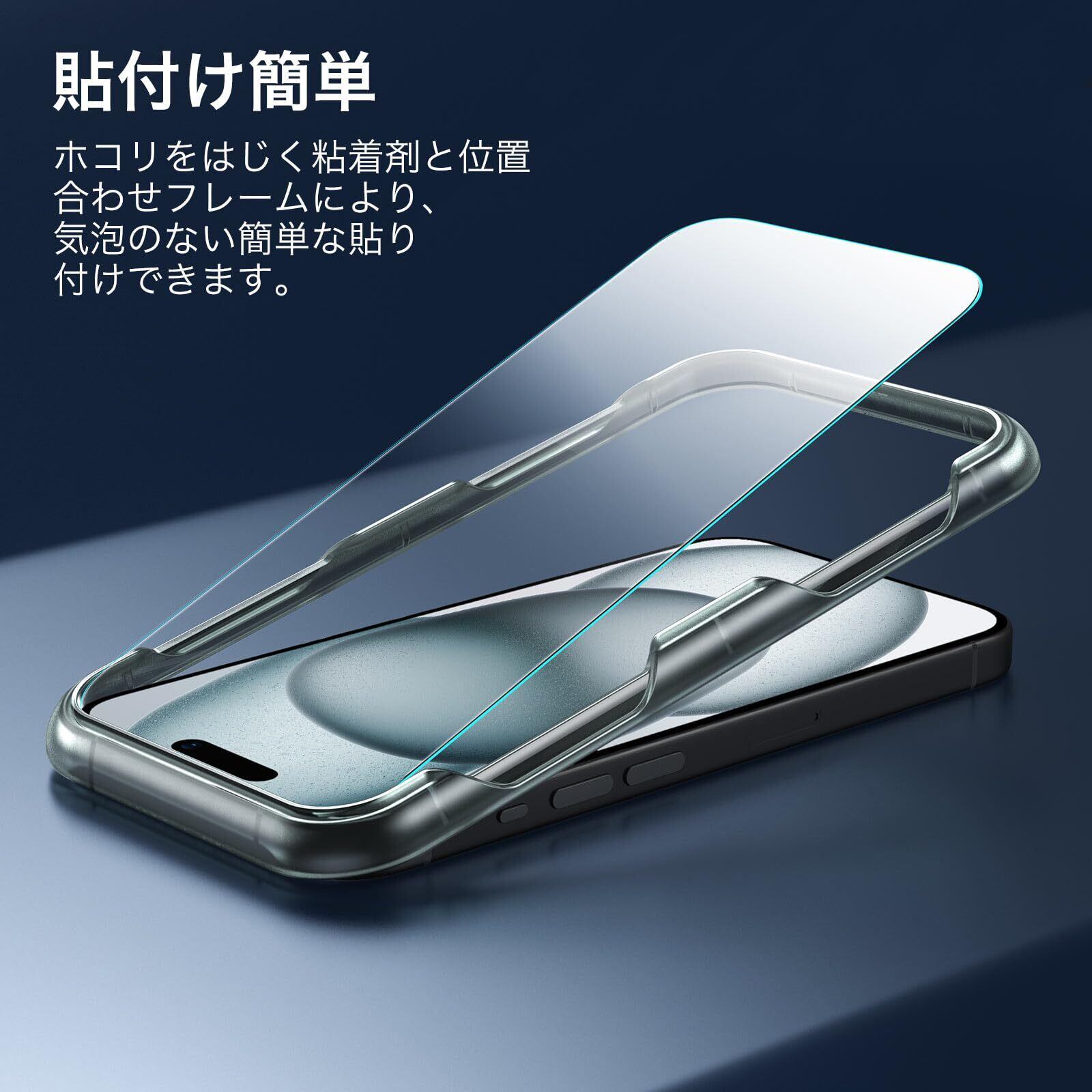 【互換性】iPhone 15 専用、スマホケース、強化ガラススクリーン保護フィルム、交換可能なイージープレスボタン2セット、位置合わせフレーム [位置合わせフレームは、保護フィルムの位置合わせをサポートするツールであり、スマホケースの一部ではありません]
