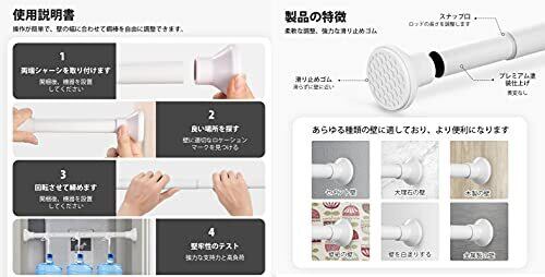 【簡単な取付け・取出し】つっぱり棒は、ネジやクギを使わずに突っ張るだけで取り付けできるので、壁を傷つけることがありません。賃貸住宅にぴったり!使用できまつっぱり棒、クローゼットロッド、室内カーテンロッド用、浴室タオル掛け用、風呂場シャワーカーテン用、部屋干し用、洗濯干し、布団干し、物干し竿、キッチン用品収納