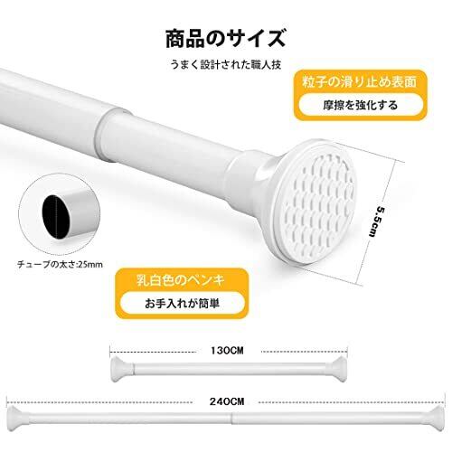 つっぱり棒 240cm 伸縮棒 2.4m クローゼットロッド 強い負荷 ドリル不要 カーテンロッド シャワーカーテンロッド 物干し竿 洗濯干し 室内 屋外 強力突っ張り棒