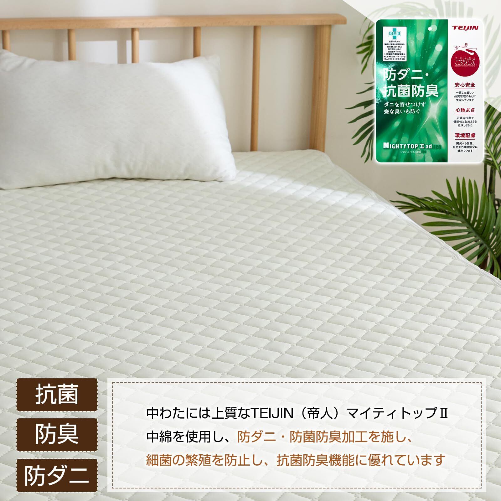 敷きパッド シングル ベッドパッド あったか 春 夏 秋 冬 オールシーズン使える 洗える しきぱっと 肌触りよい マットレスパッド 吸湿速乾 抗菌 防臭 防ダニ加工 SEK認証 静電気防止加工 四隅ゴム付き 100×205cm ベージュ