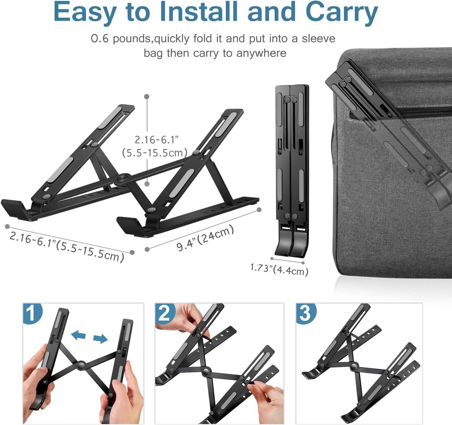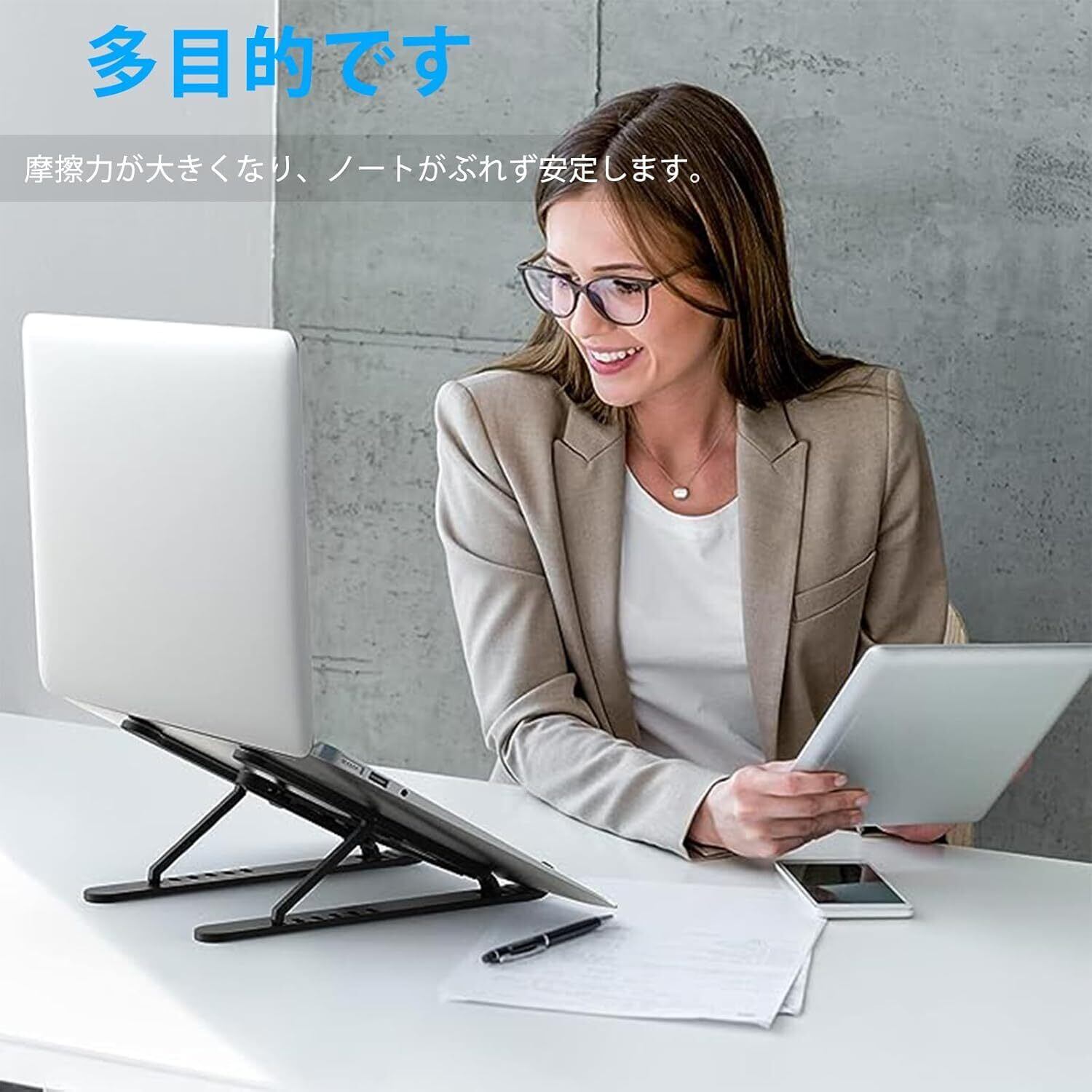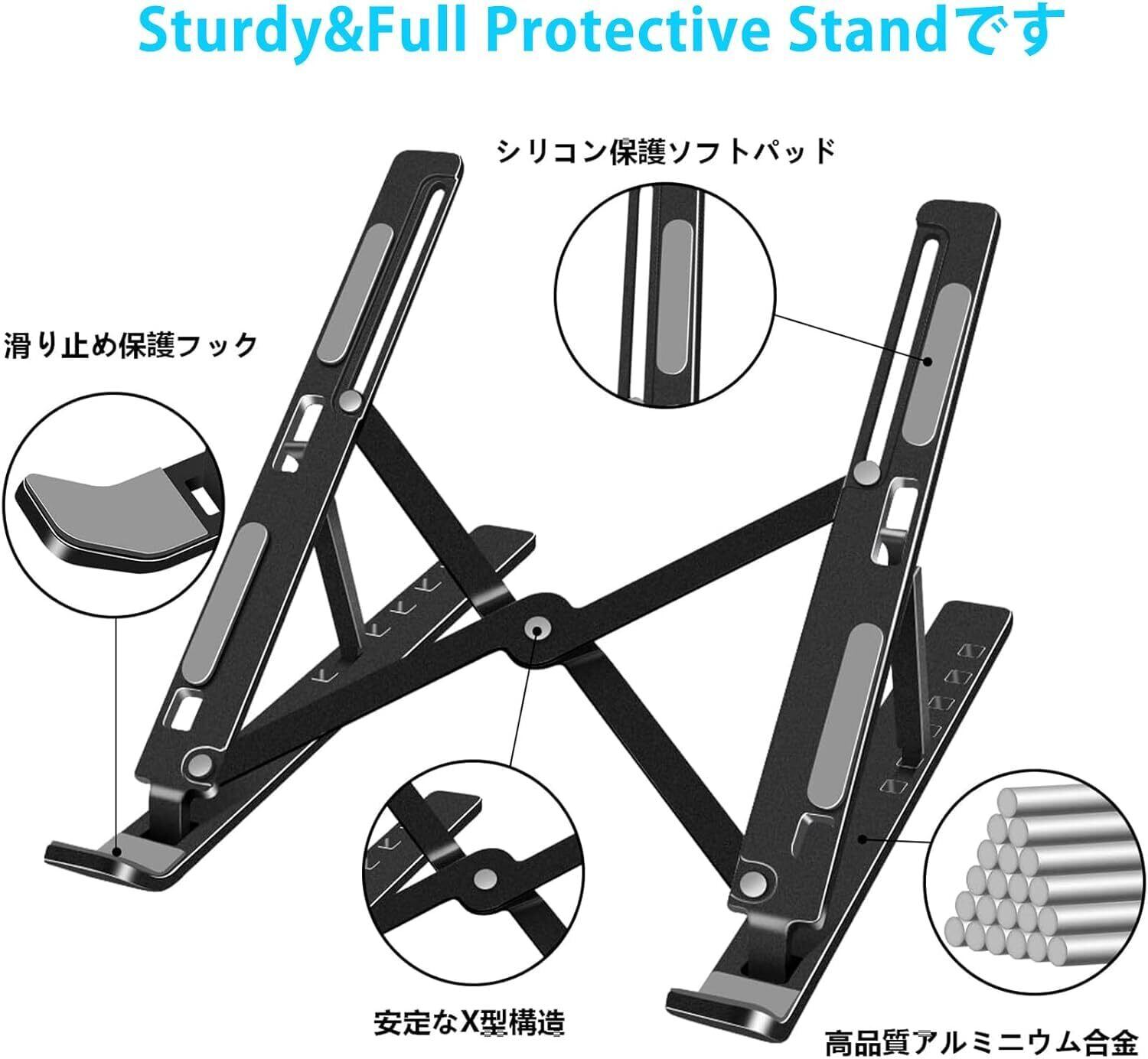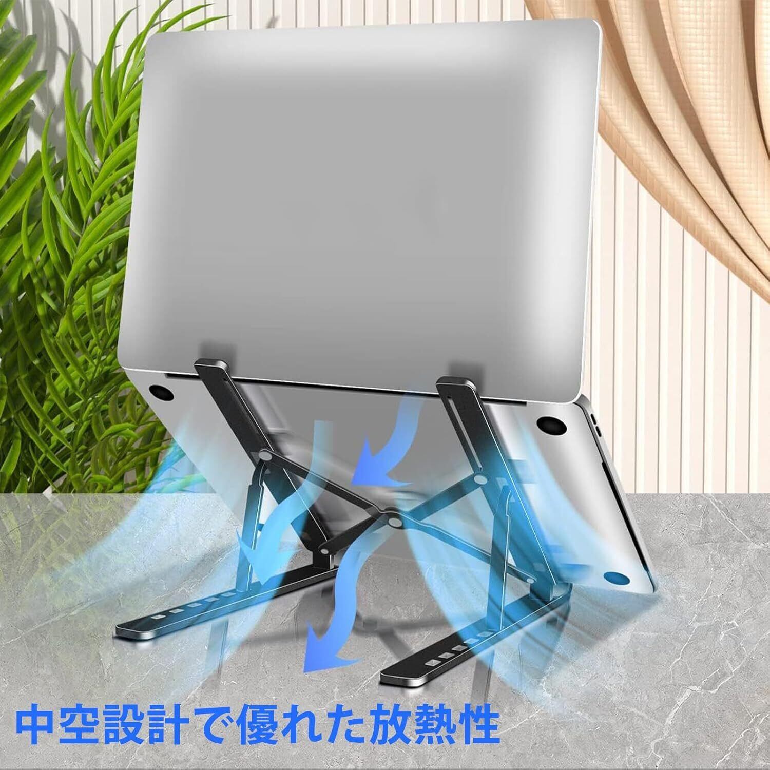 ノートパソコン スタンド 折りたたみ式 パソコンスタンド 超軽量ポータブ合金製 7段階高さ調節可能 滑り止め PC/MacBook/ラップトップ/iPad/タブレット (金属) 黒