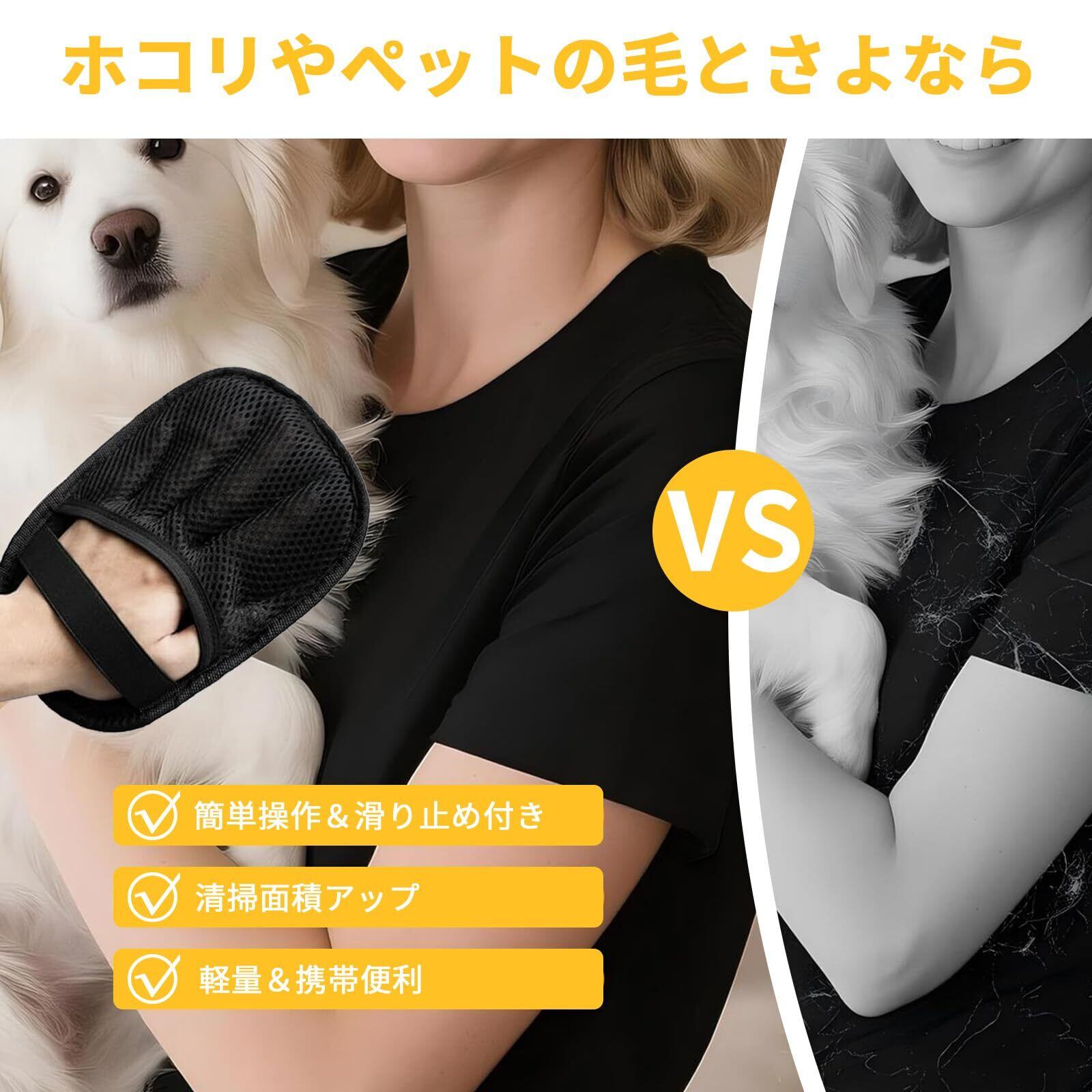 【✋面倒な道具いらず!指を動かすだけ】片手で装着できる手袋型だから、ブラシの保管や洗浄の手間が不要。ソファの隙間やカーテン、車のシートなど狭い場所も指先でらくらく除毛。ペットを撫でながら同時にお手入れできるため、わんちゃん・ねこちゃんもリラックス!「お手入れ=嫌がられる時間」から「スキンシップタイム」へ変革します。