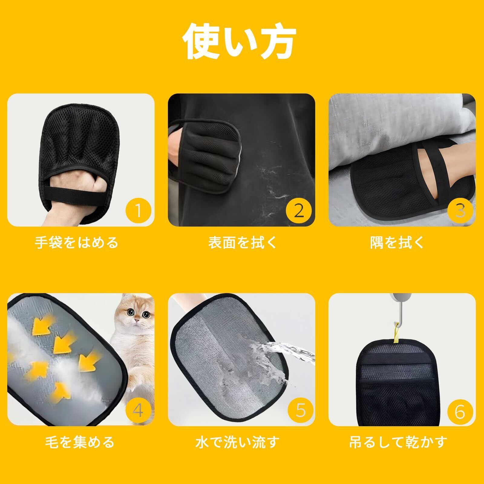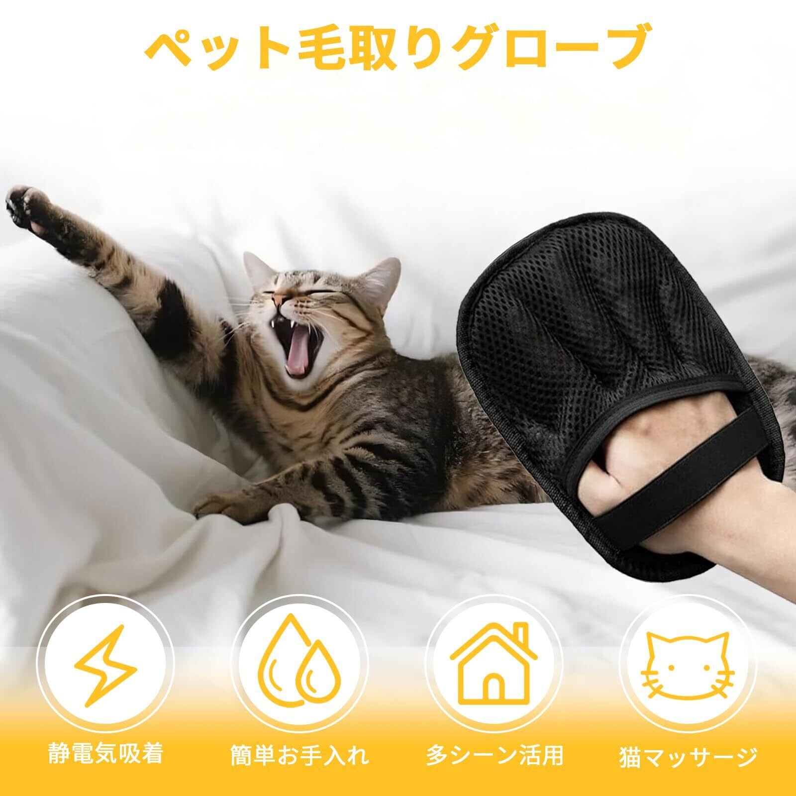 【2個入】らくらく抜け毛グローブ 猫の毛取り ペット静電気除去手袋 猫の毛取りグローブ ペット用無痛グルーミンググローブ 除毛手袋 犬/猫/ウサギなど対応 静電気防止手袋 お手入れ用品 水洗える
