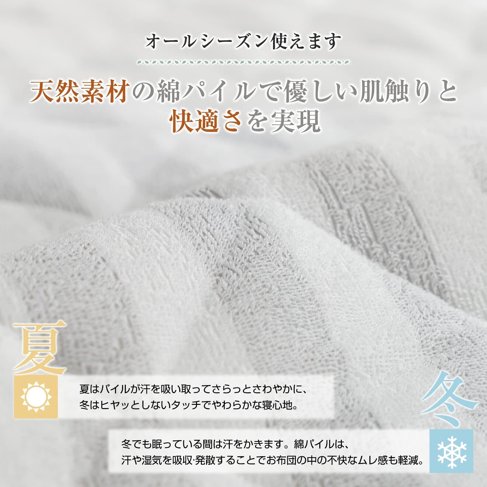 【表地綿100%! シーツ不要も可】表側パイル部分:綿100% 表側グランド部分:ポリエステル100% 中綿:ポリエステル100%(抗菌防臭・「TEIJIN」の中綿使用)肌触りが最高の上に、寝返りをしても、隅々まで柔らか触感を楽しめる使用感に意外とファンが多いです。毛玉やほつれができない、静電気も少ないため、ベッドカバーをかけず、そのまま寝ていただいても肌触りの心地よさを実感していただけます。