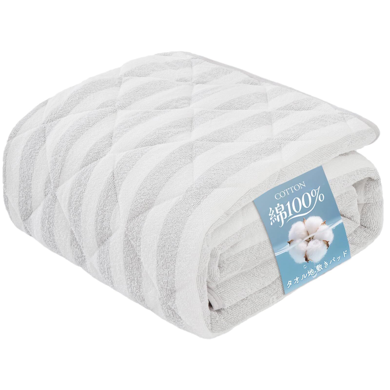 Matdeco 敷きパッド シングル 綿100% ベッドパッド タオル地 【帝人マイティトップII中綿使用】抗菌・防臭・防ダニ加工 吸湿速乾 オールシーズンで使える ベッドシーツ ベッドマット 柔らかい肌触り パイル部分は綿100% コットン 洗える シーツ 敷パット 100x200cm グレー