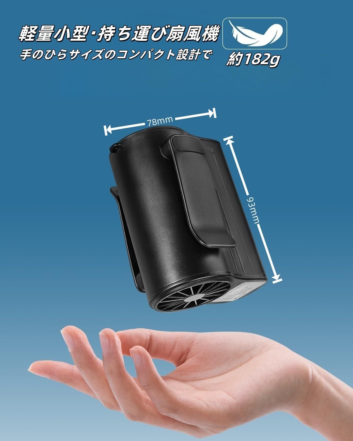 【様々なシーンに適応・12ヶ月安心保証】この 腰掛け扇風機 は、93*61*78mmのコンパクトなサイズと、わずか182gの軽量ボディで設計され、一日中着用しても圧迫感を感じません。小さいのにパワフルで夏の様々なシーンで蒸し暑いトイレの中でもお役立ち。工事現場やキャンプなど夏のレジャーやアウトドア、スポーツ観戦等のイベントで大活躍。また、お客様により良いサービスを提供するために、当商品には1年のサポートがございます。正しい使用方法において、万が一商品に不具合がある場合は、商品ページの販売元をクリックして、「質問する」ボタンより弊社までご連絡いただければ迅速に対応いたします。