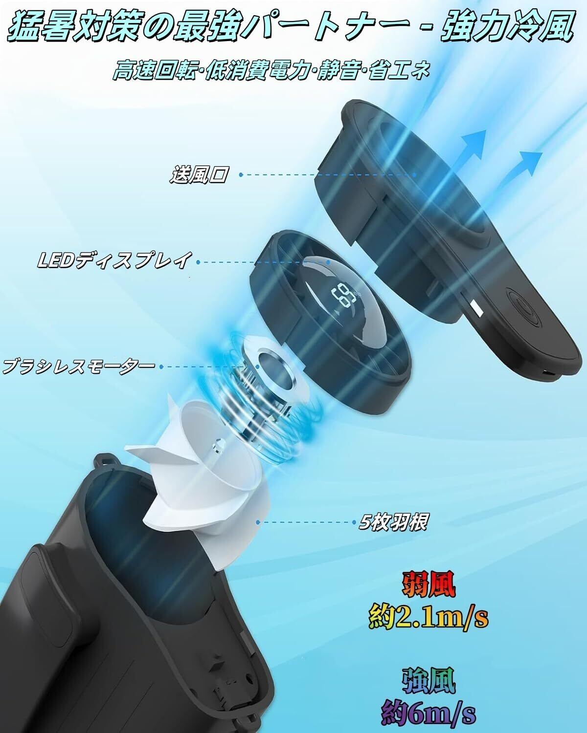 【高品質ブラシレスDCモーター・低騒音設計】新先端1100rpmのブラシレスDC静音モーターを採用、10m/sの強力な風を実現します!強力な風量を確保しながら、くびかけ扇風機の駆動音はわずか25dBと超静音を実現し、従来のブラシ付きDCモーターと比べて、耐久性が高く長持ち、ハイパワー、静かで低ノイズな動作音といった優れた特徴を持っています。