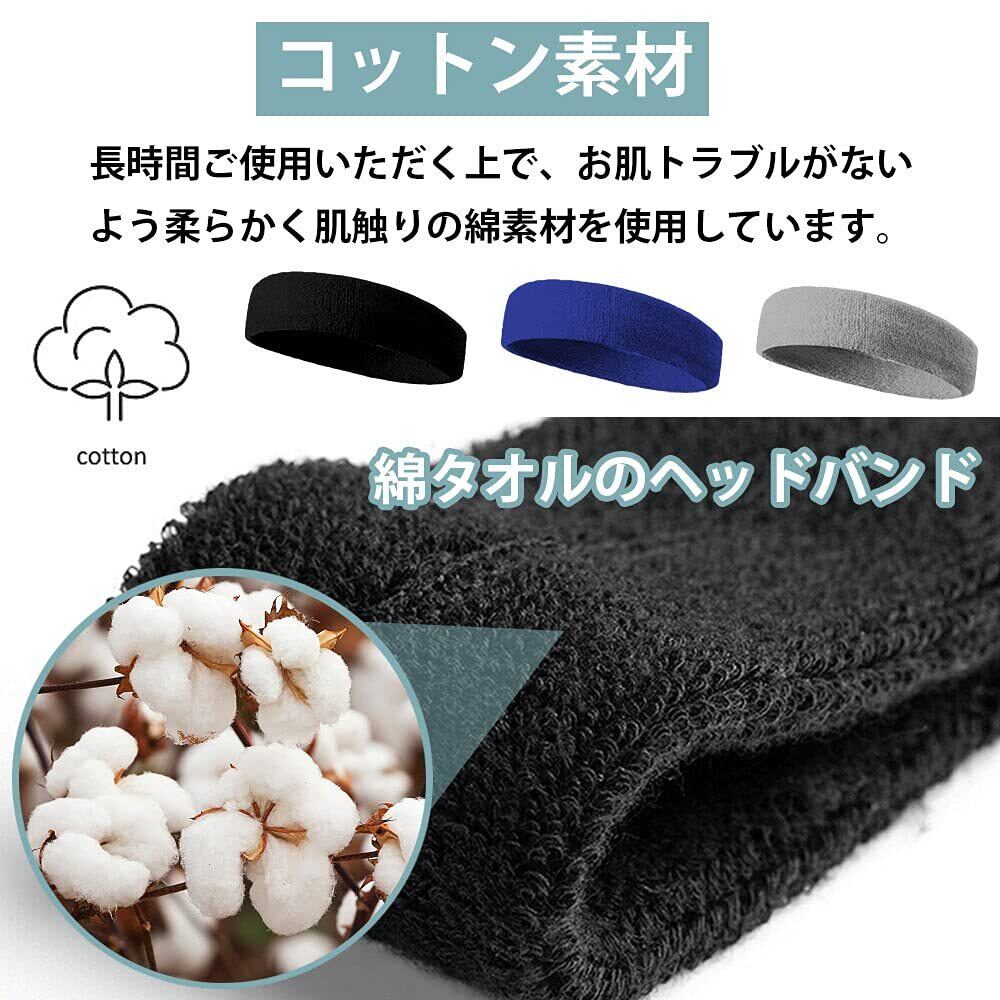 ヘアバンド ヘッドバンド 汗止め メンズ コットン素材 スポーツ用 洗顔 吸汗速乾 抗菌防臭 通気性あり 伸縮性あり 柔らかい ランニング ダンス ヨガ ジョギング 男女兼用 3本セット (ブラック+グレー+ホワイト)