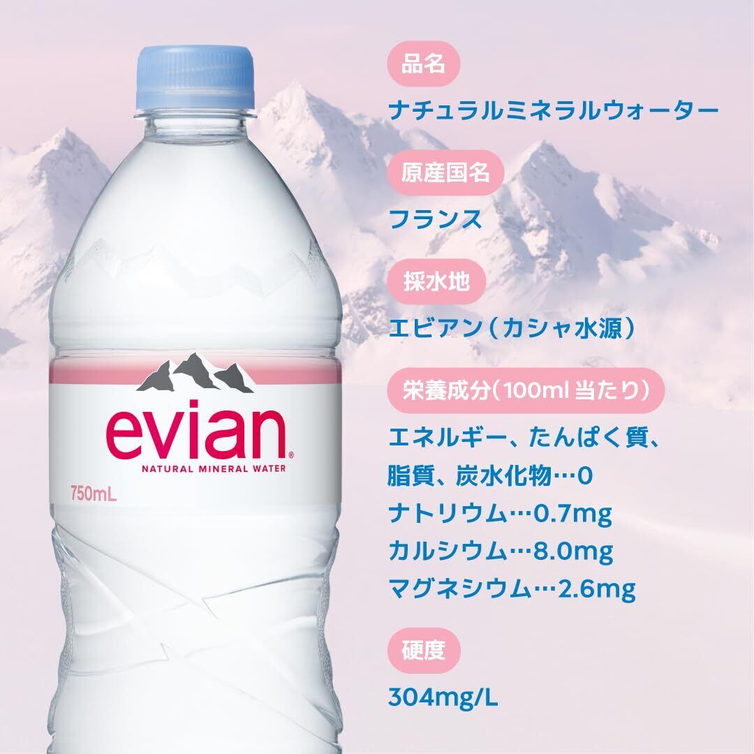 Evian(エビアン) 伊藤園 evian 硬水 ミネラルウォーター ペットボトル 750ml×12本 [正規輸入品]