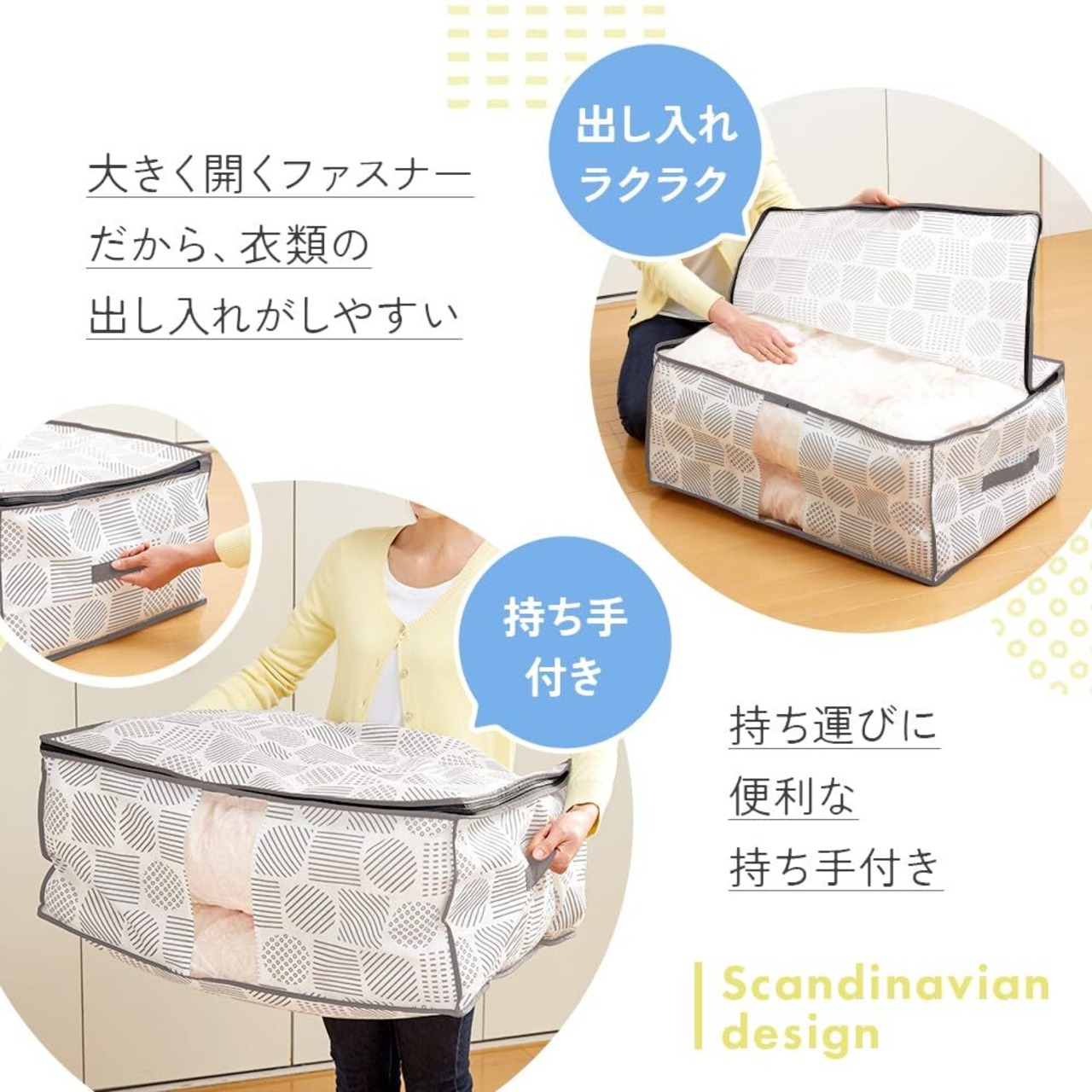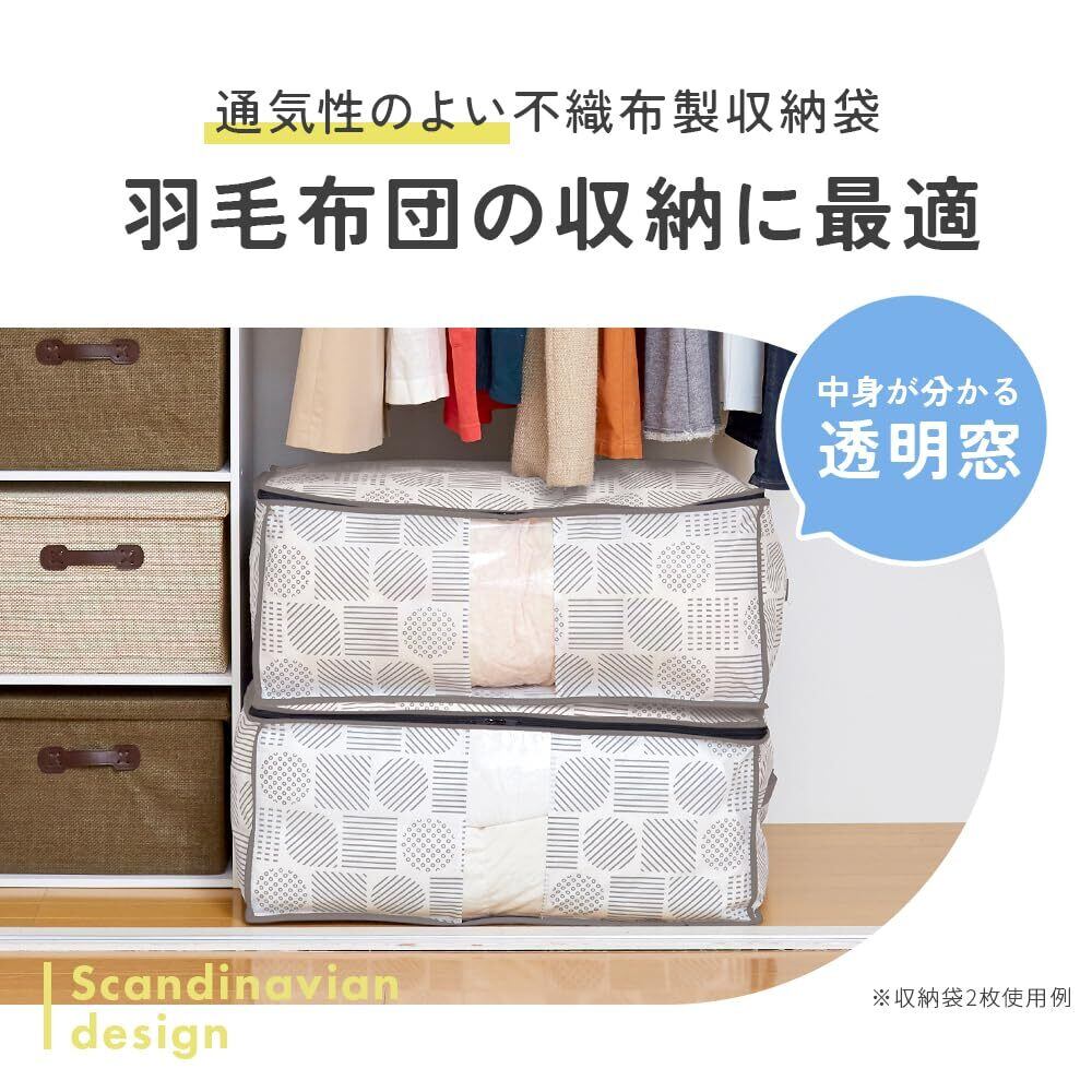 アイメディア(Aimedia) 布団収納袋 布団収納ケース 羽毛布団 布団 収納袋 収納ケース 収納ボックス 寝具 収納 ふとん用 北欧柄 不織布 防塵 通気性 透明窓付き 持ち手付き コンパクト 軽量 押入れ クローゼット おしゃれ