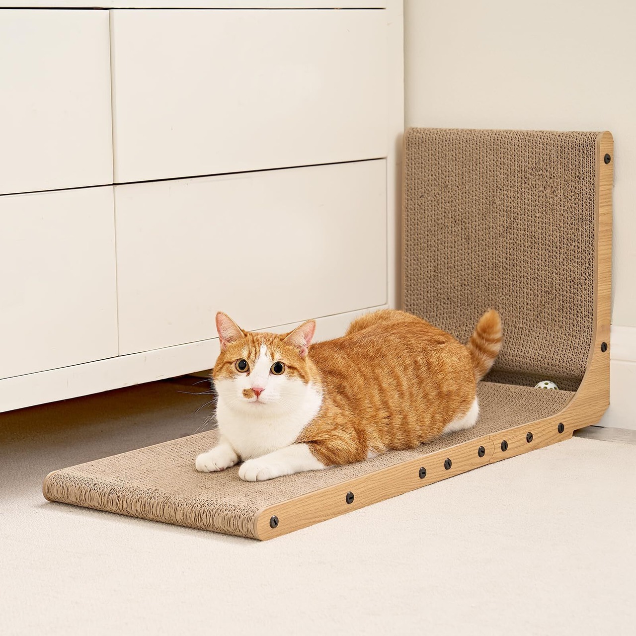 多用途:猫は爪研ぎ段ボールの上でひっかいたり、くつろいだり、伸びをしたりできます。猫用スクラッチボードには、猫が遊べるおもちゃのボールも付いています。 猫に安全で快適な環境を提供します。