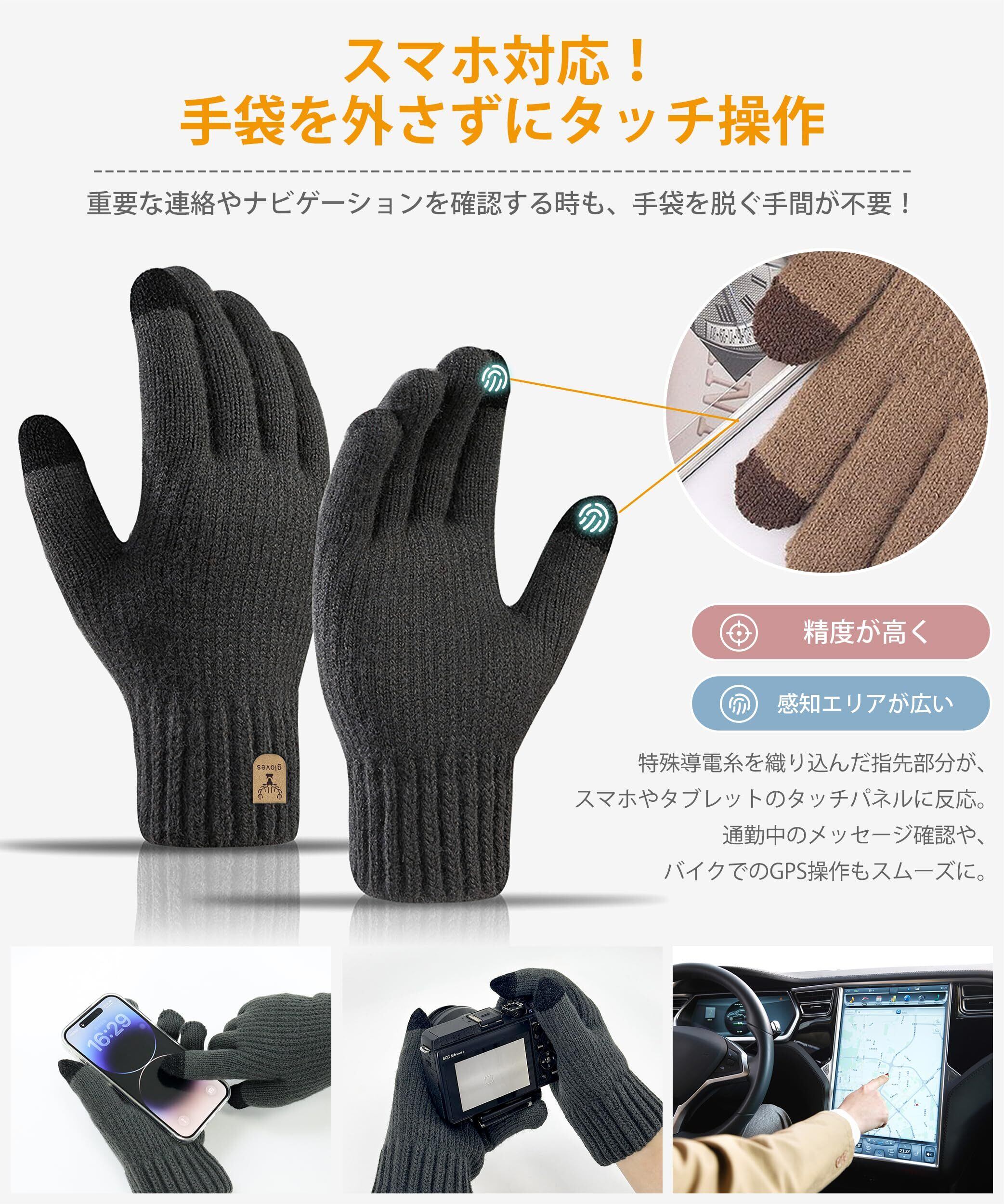 【極上の着け心地・ふんわりした内層】「手荒れ」や「締め付け感」のないメンズ 冬用 手袋が登場!この防寒手袋高弾性通気ニット加工を採用し、肌触りが柔らかく快適で肌に優しく刺激を与えません。皮膚に直接に触れる内層素材はウールのような極上の柔らかさで、これまでにない没入体験を提供します。人体工学に基づく立体裁断により、手の動きに完璧にフィットし、違和感ゼロの自然な着用感を実現できます。手放せないほど愛されるニット 手袋です。