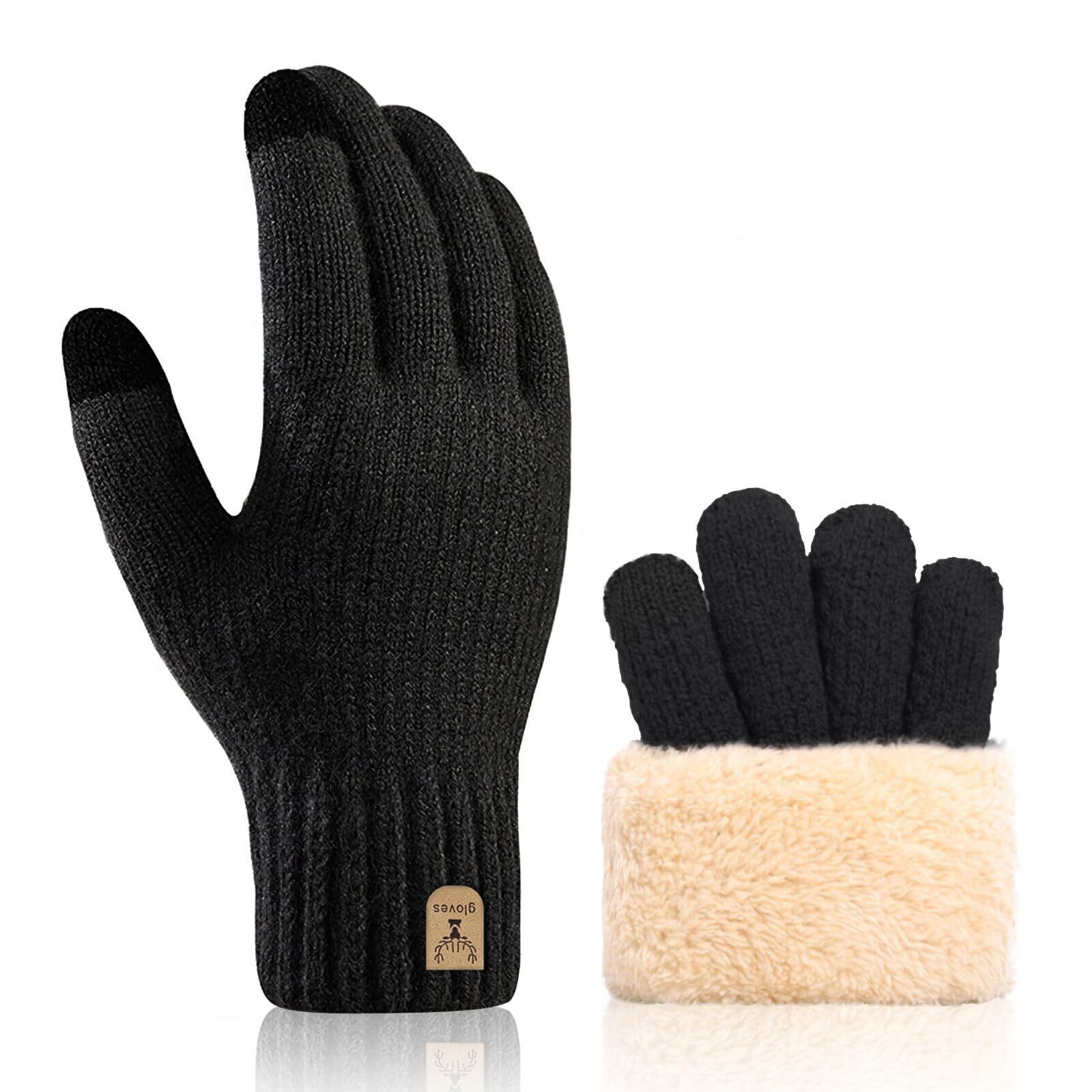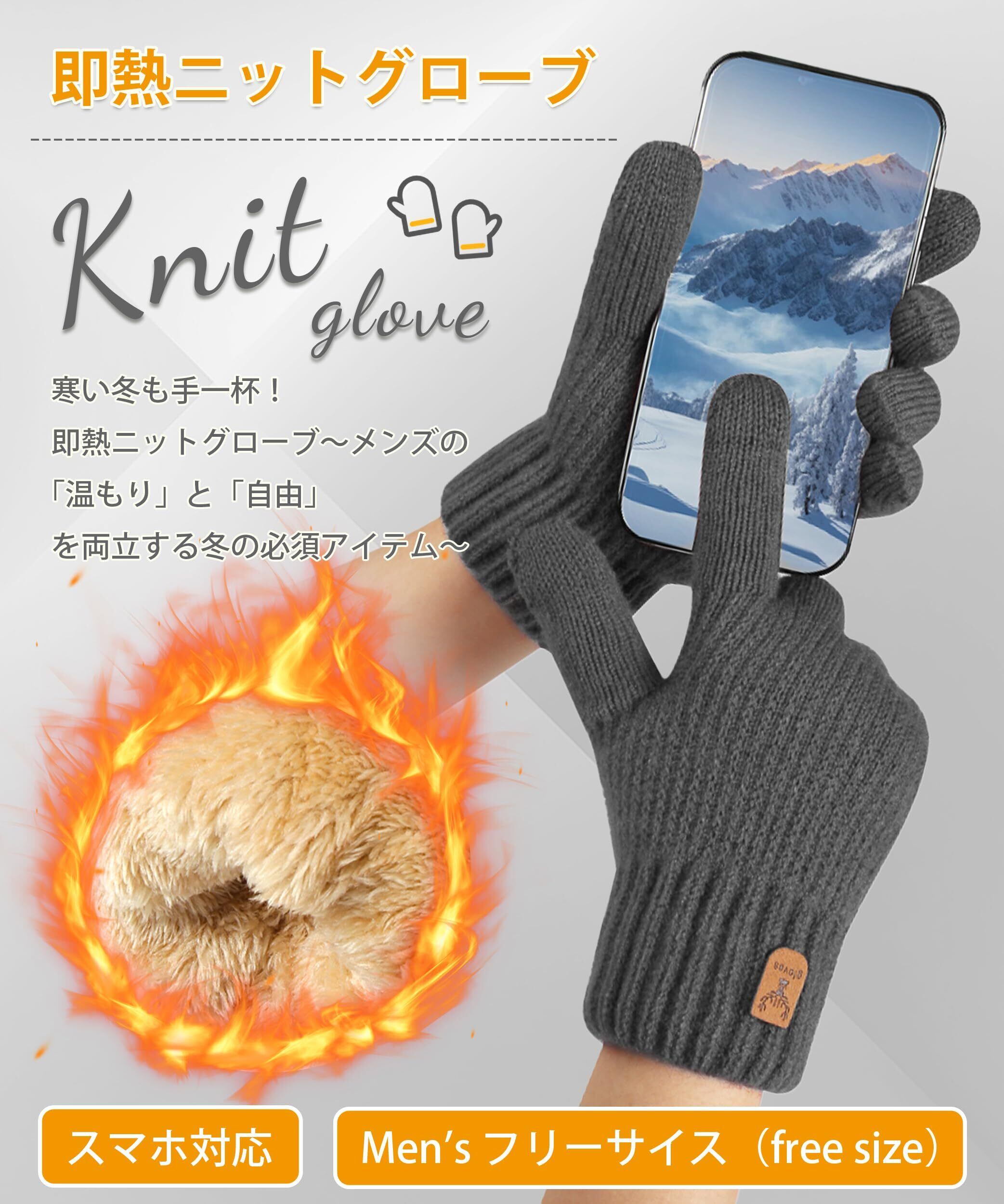 [MOWO] 手袋 メンズ 防寒 グローブ スマホ対応 冬 【即刻発熱の防寒グローブ・極上の着け心地・裏起毛】 ニットグローブ ニット手袋 暖かい 厚手 ふわふわ 柔らか タッチパネル対応 伸縮性 ギフト 通勤通学・自転車・バイク・スキー (ブラック, FREE SIZE)
