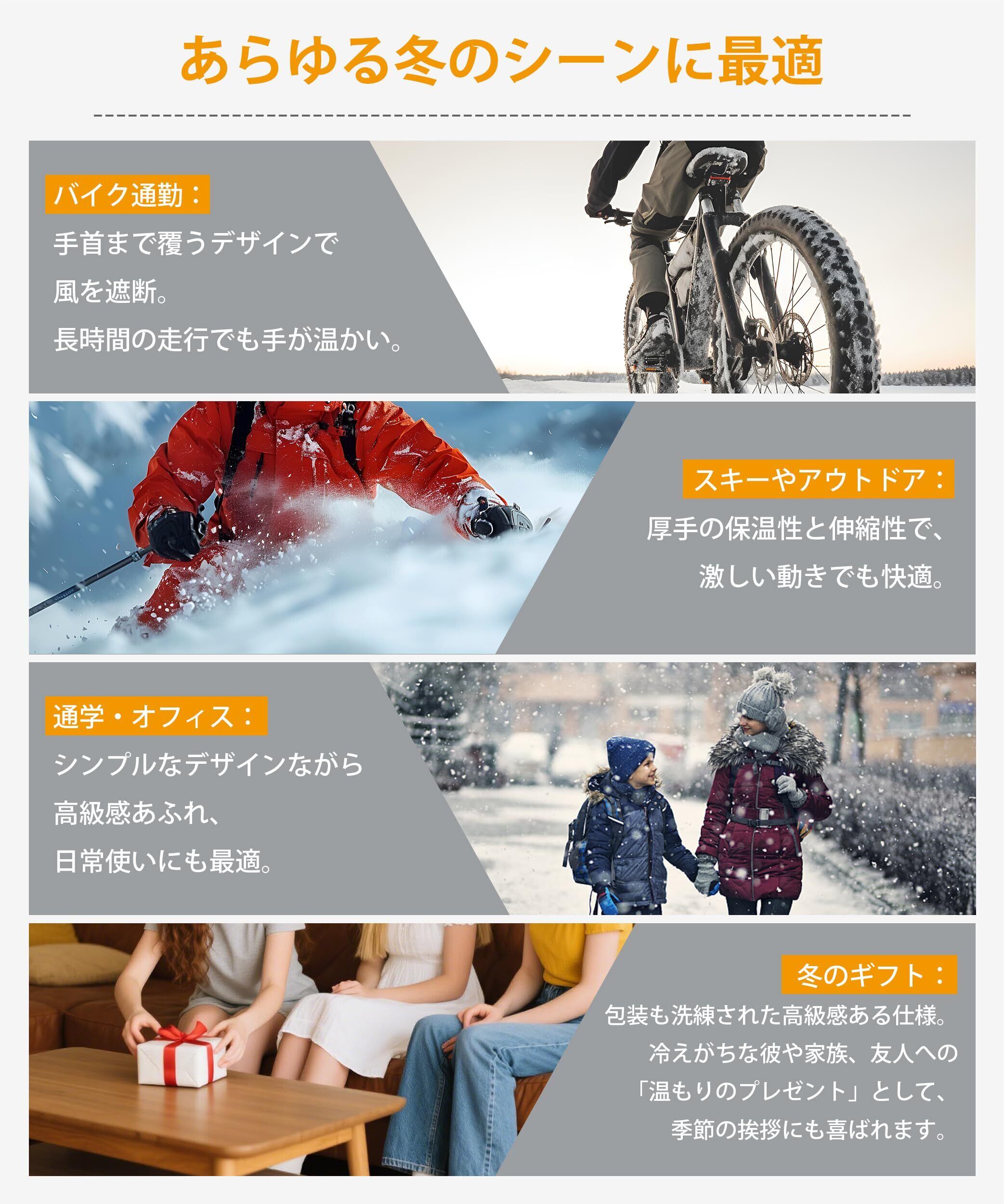 【真冬に欠かせない 防寒手袋】通勤通学だけでなく、自転車乗り、ランニング、スキーなどのアウトドアスポーツにも最適です。MOWO防寒手袋は冬のあらゆるシーンに対応可能です。保温性からデザイン性、耐久性から多用途対応性まで、あらゆる面でバランスの取れたこの手袋は、誕生日やクリスマスのプレゼントとして家族や友人に贈るのに最適です。思いやりある機能性とスタイリッシュな見た目を兼ね備え、実用性とファッション性を両立した選択肢と言えます。