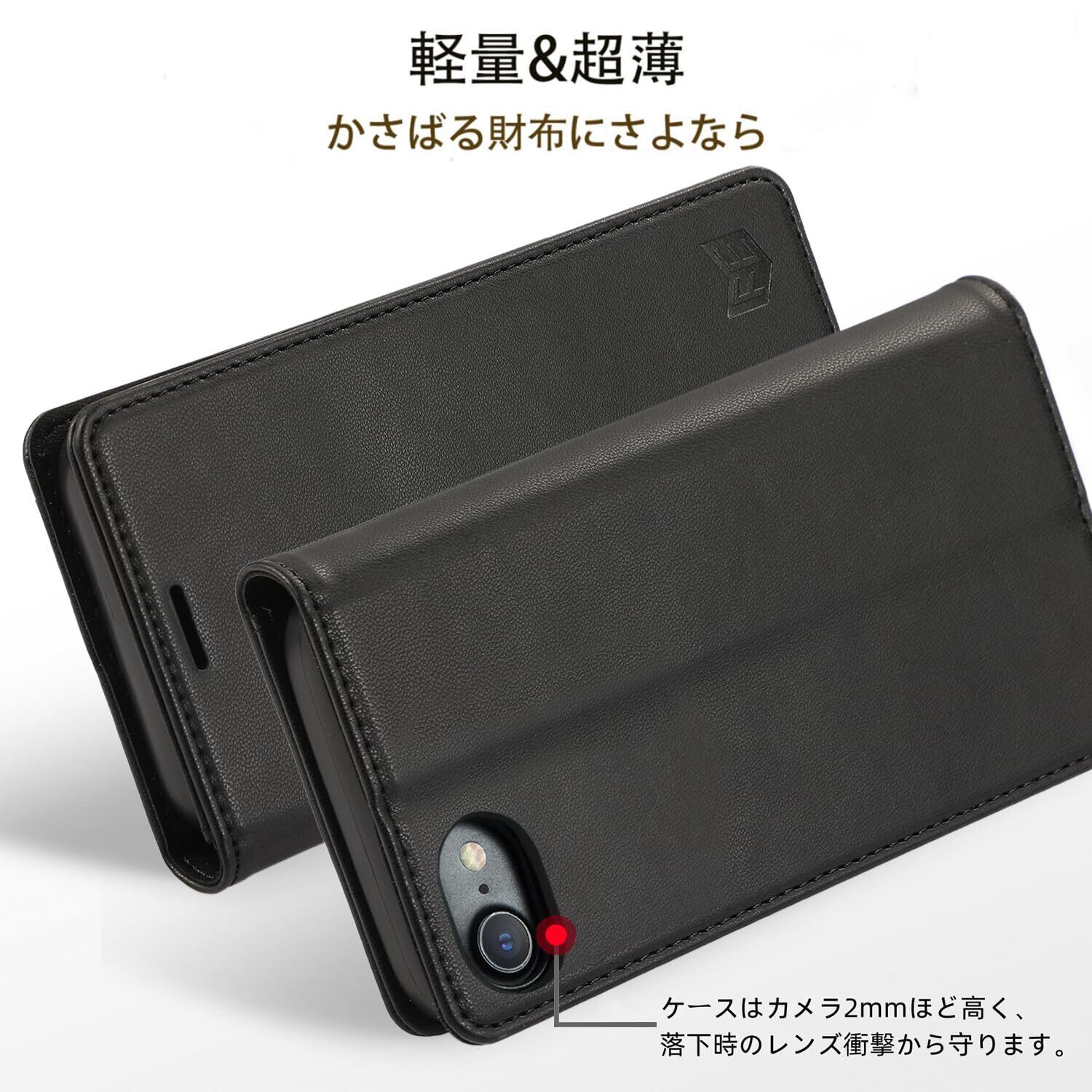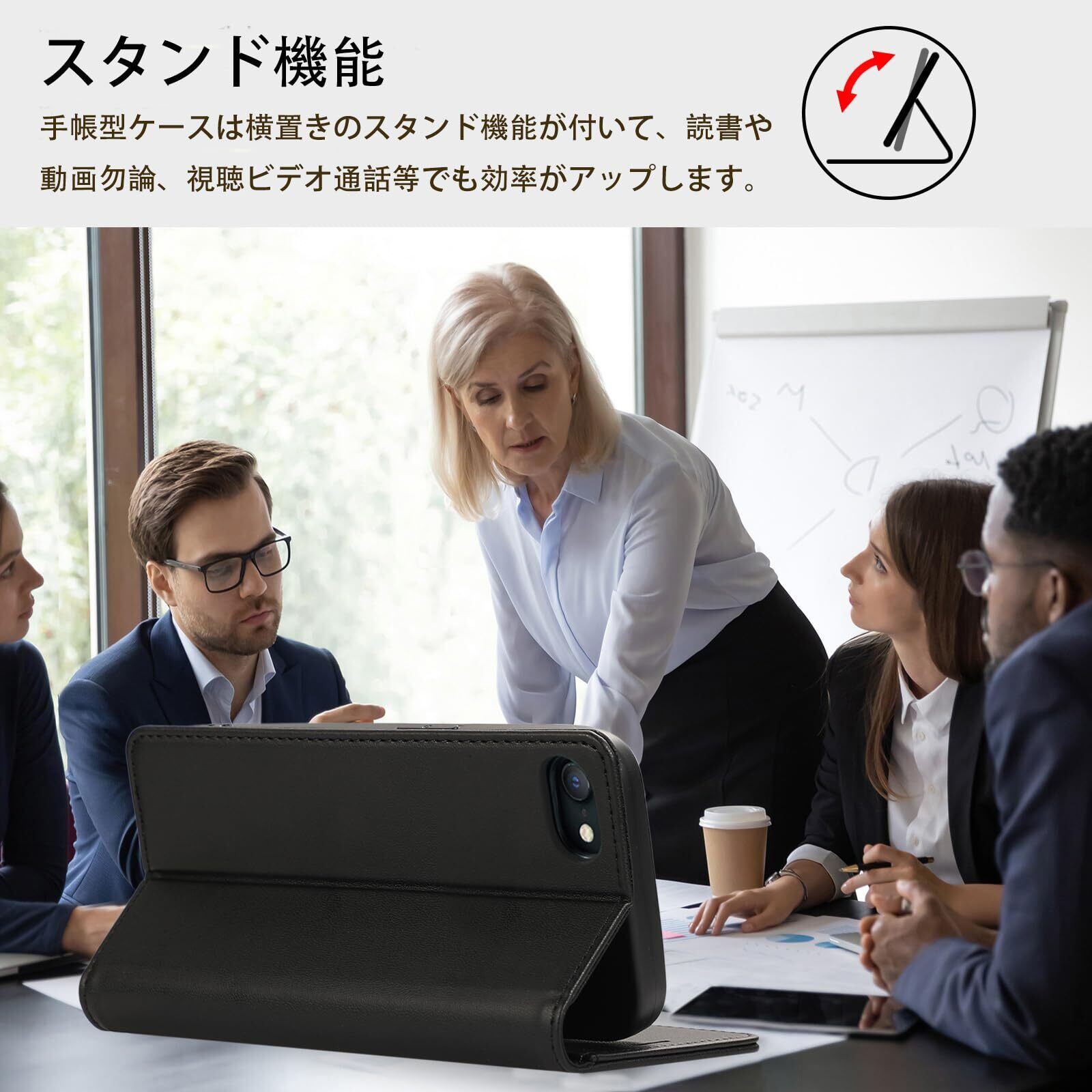 FeeY iphone se 第3世代 手帳型ケース se 2020 ケース手帳型 iPhone8 ケース iPhone 7 手帳 iPhone se3 スマホケース カード収納 横置きスタンド機能 TPU素材 衝撃吸収 全面保護 iPhone 7/8/SE2 /SE 2022 4.7インチ対応 ,ブラック