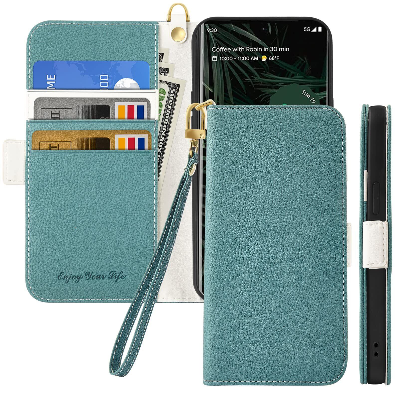 ALSDKEZI 対応 Google Pixel 6a ケース 手帳型, グーグル ピクセル 6A 用 カバー, 人気おしゃれ財布型カード収納 携帯ケース, ライチ柄高質PUレザー 良い触り心地 ケース サイドマグネット式 スマホケース スタンド機能 耐衝撃 保護カバー 大人 男女兼用 (グリーン/Green)