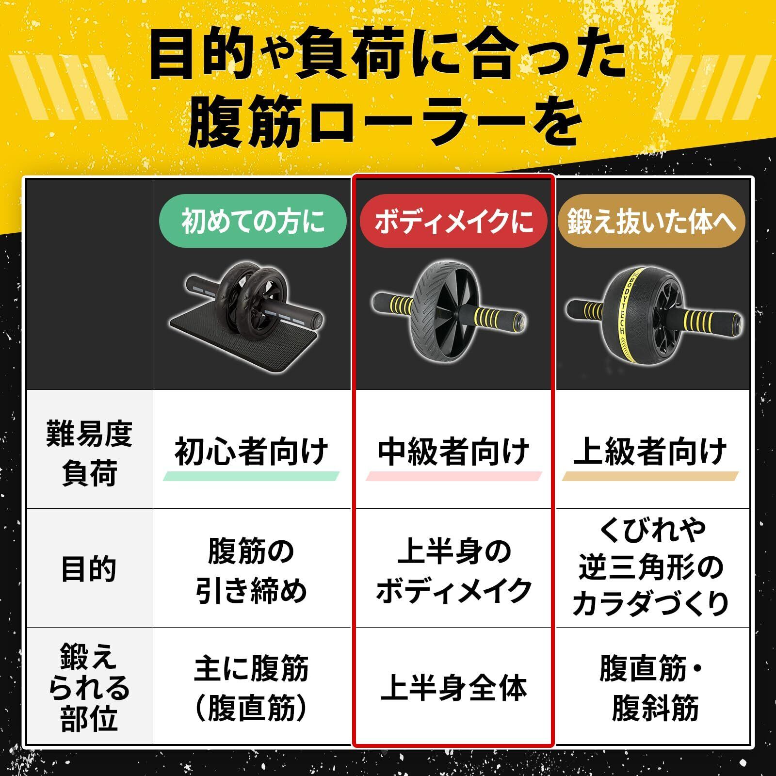 ボディテック 腹筋ローラー マット付き アブローラー 初心者 シングルローラー アブホイール 静音