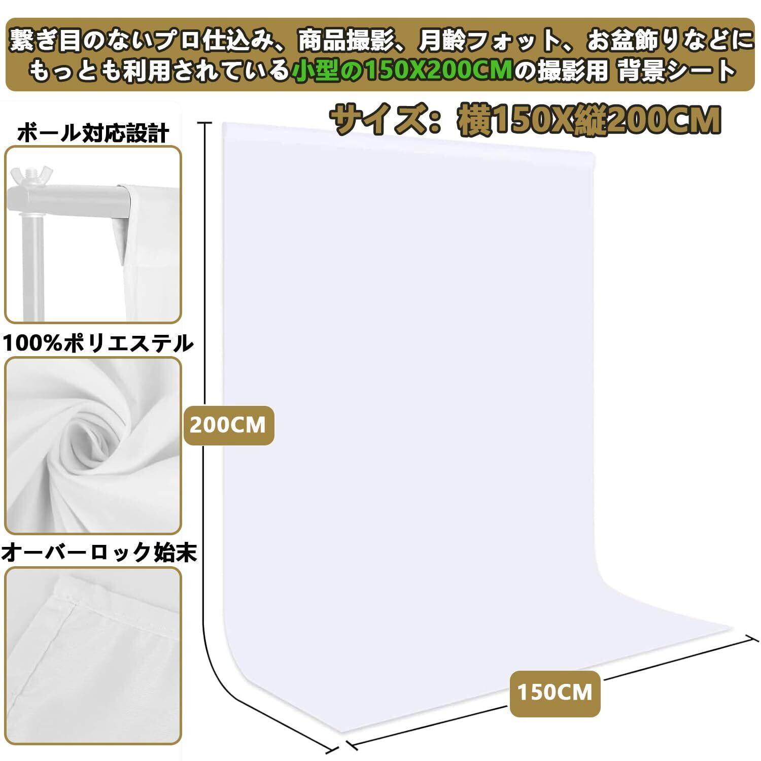 白い布150㎝×200㎝:白い布の寸法は150㎝×200㎝ですので、自宅でも白背景布一枚だけで簡単に商品を美しく撮影できて、急に決まった web会議 、部屋の汚れがお掃除せずに迅速に使用可能です。また背景布 白は色が均一で清潔感があり、盆棚や精霊棚などのお飾りとしても使用可能です。注:白背景は収納袋が付いており、コンパクトに収納できて便利です。