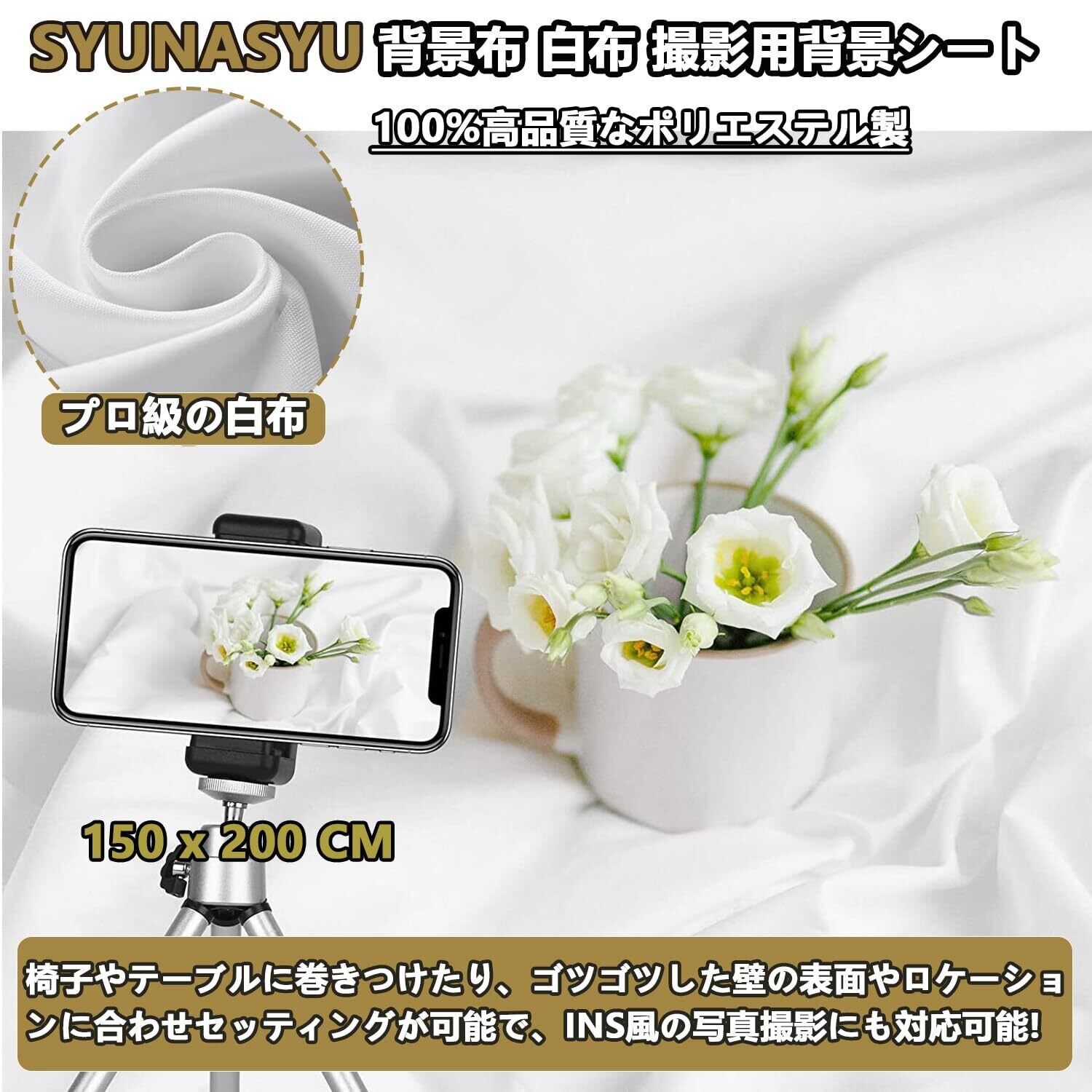 SYUNASYU 背景布 白布 150x200cm 撮影用背景シ一卜 100%ポリエステル 撮影 背景 無地 白い布 糸抜け心配なし 撮影用 白 布 背景シ一ト 洗濯可能 背景紙 写真背景 1.5 x 2.0m 撮影 背景 布