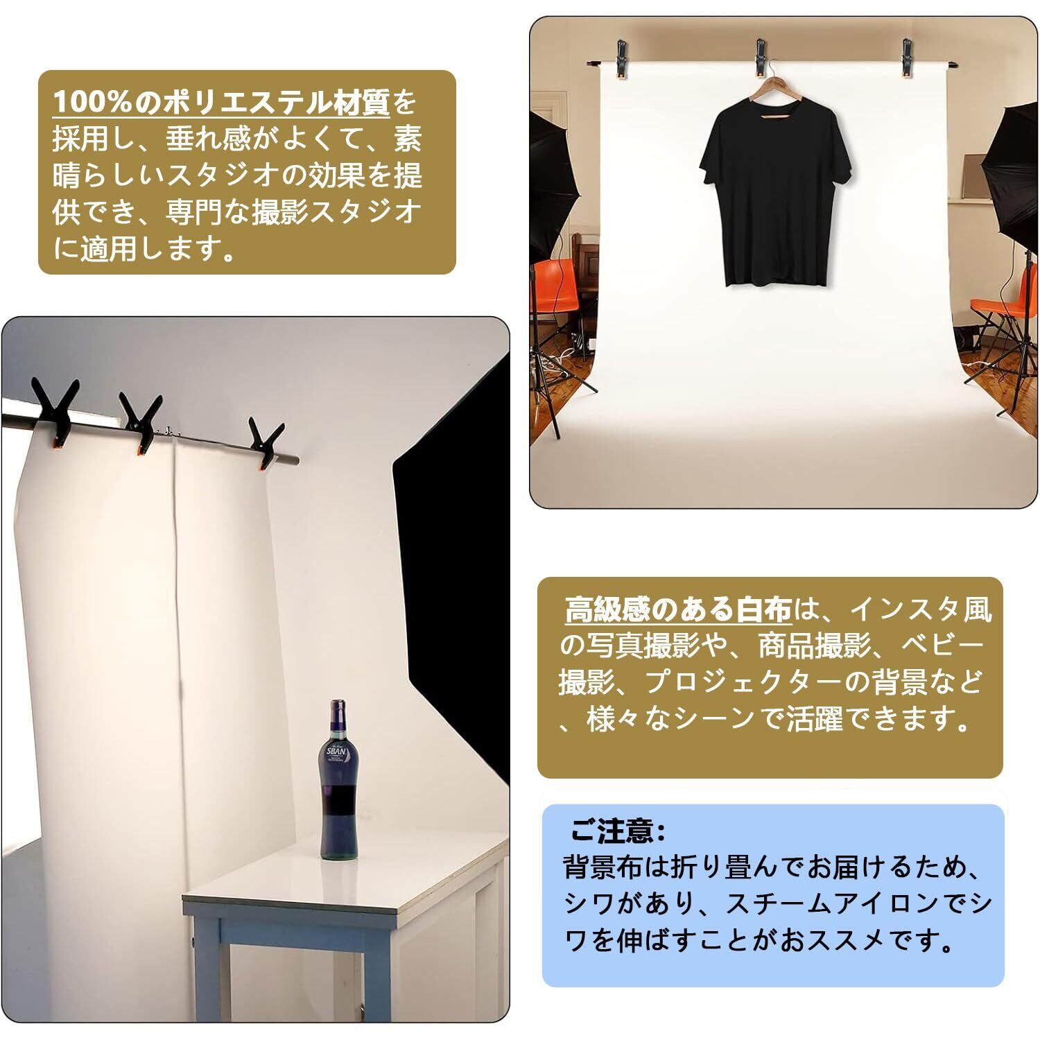 幅広く応用可能:撮影用 白背景はポリエステルの材質により、手触りがよいだけではなく、より純正な色合いにより、更に綺麗な写真を撮影することができます。ホームスタジオ、クラブ、イベント、オフィス写真などに理想的な白い布です。よくビデオ撮影、静物などいろいろな場面で大活躍です。注:椅子やテーブルに巻きつけたり、ゴツゴツした壁の表面やロケーションに合わせセッティングが可能で、INS風の写真撮影にも対応可能です。