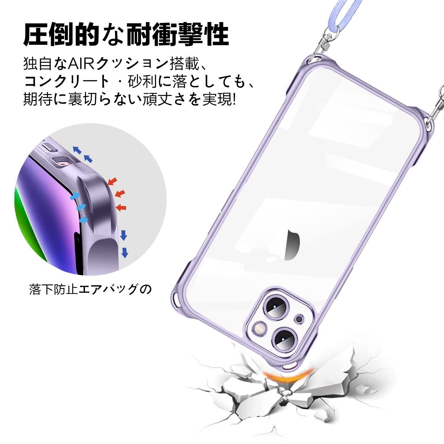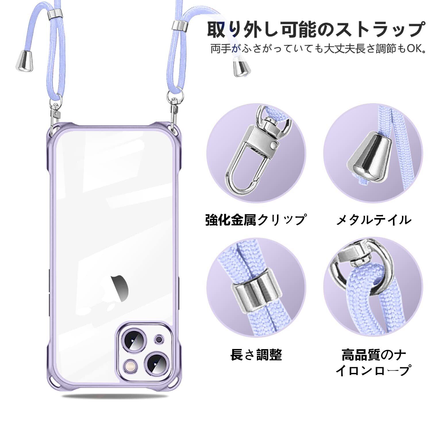 NISIILNG iPhone 14 Plus 用 ケース クリア ショルダー iPhone14plus スマホケース アイフォン14Plus カバー 肩掛け 斜めかけ 縄掛けケース 透明 薄型 軽量 耐衝撃 TPU ストラップ付き 紐付き 斜めがけ 織りストラップ付き ネックストラップ ショルダー 縦/横 2WAY 長さ調整可能 取り外し可能 落下防止 紛失防止 (パープル)