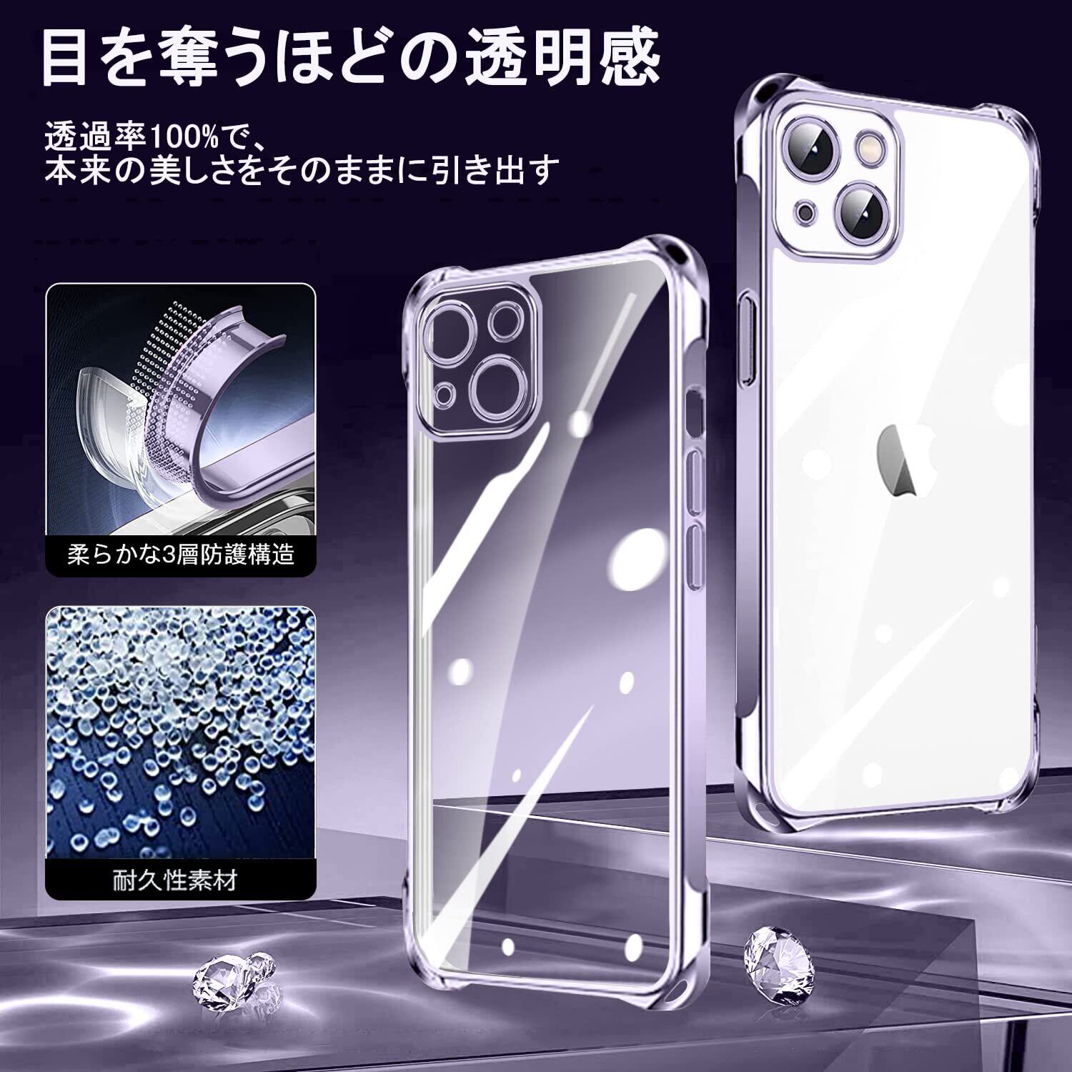 【高品質な素材】この透明な携帯ケースは、柔らかいTPU素材を採用して作られており、スマホ本体に近い手触りを感じることができ、持ち心地も快適です、落下のリスクも減らします。酸化を防ぐ特殊加工を使って、黄ばみにくく、透明感を長期間保持します。本商品は端末に触れるケース裏側に極小さな微粒子上の突起処理を行い端末の発熱を軽減する散熱加工を行っております、気泡の発生も防ぎます。