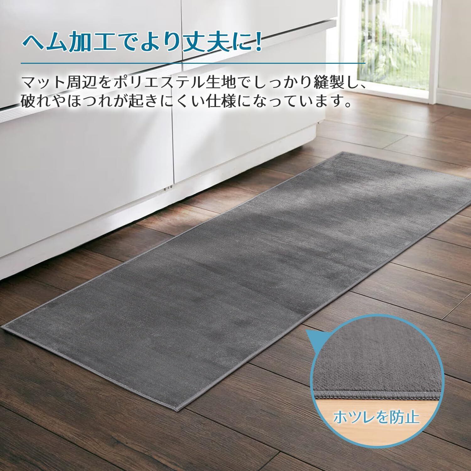 Tydle キッチンマット フランネルマット 43×240cm キッチンラグ マット 滑り止め付き フランネル生地 短毛 洗える ラグマット お手入れ簡単 床暖房対応 オールシーズンで使える おしゃれ シンプル 無地 グレー