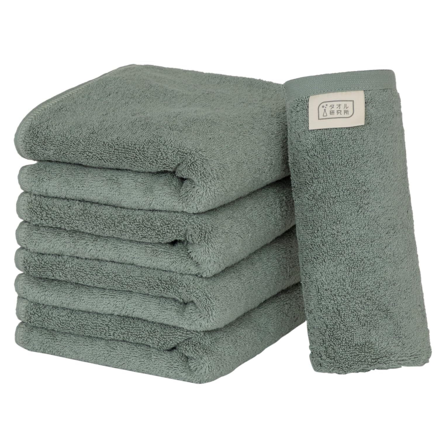 タオル研究所 [ボリュームリッチ] #003 フェイスタオル ダスティーグリーン 5枚セット ホテル仕様 厚手 ふかふか ボリューム 高速吸水 耐久性 綿100% 480GSM JapanTechnology