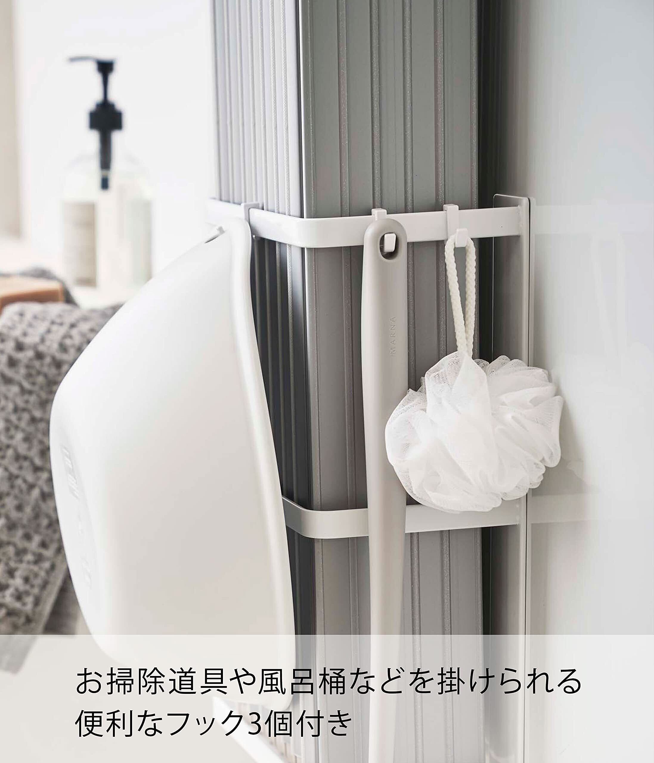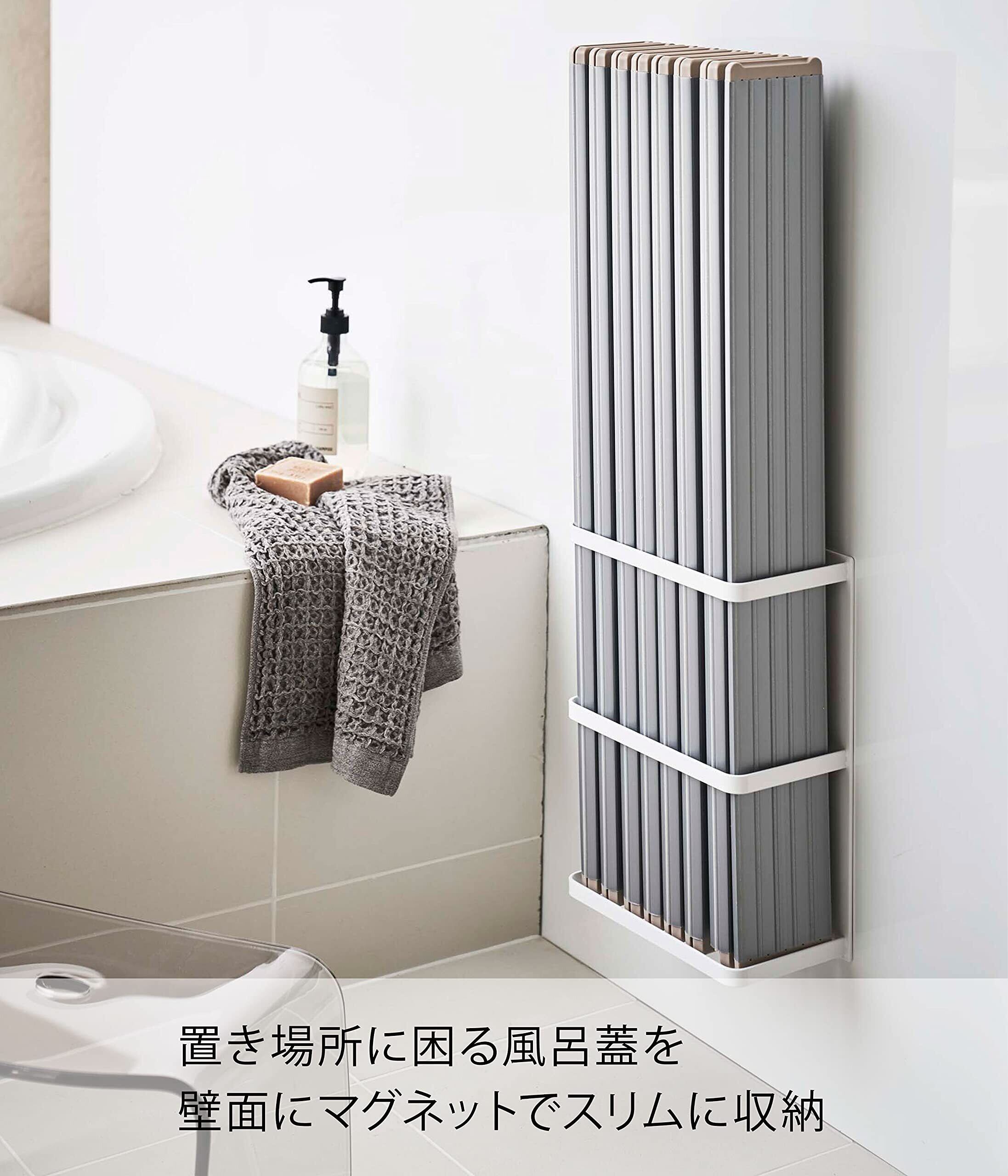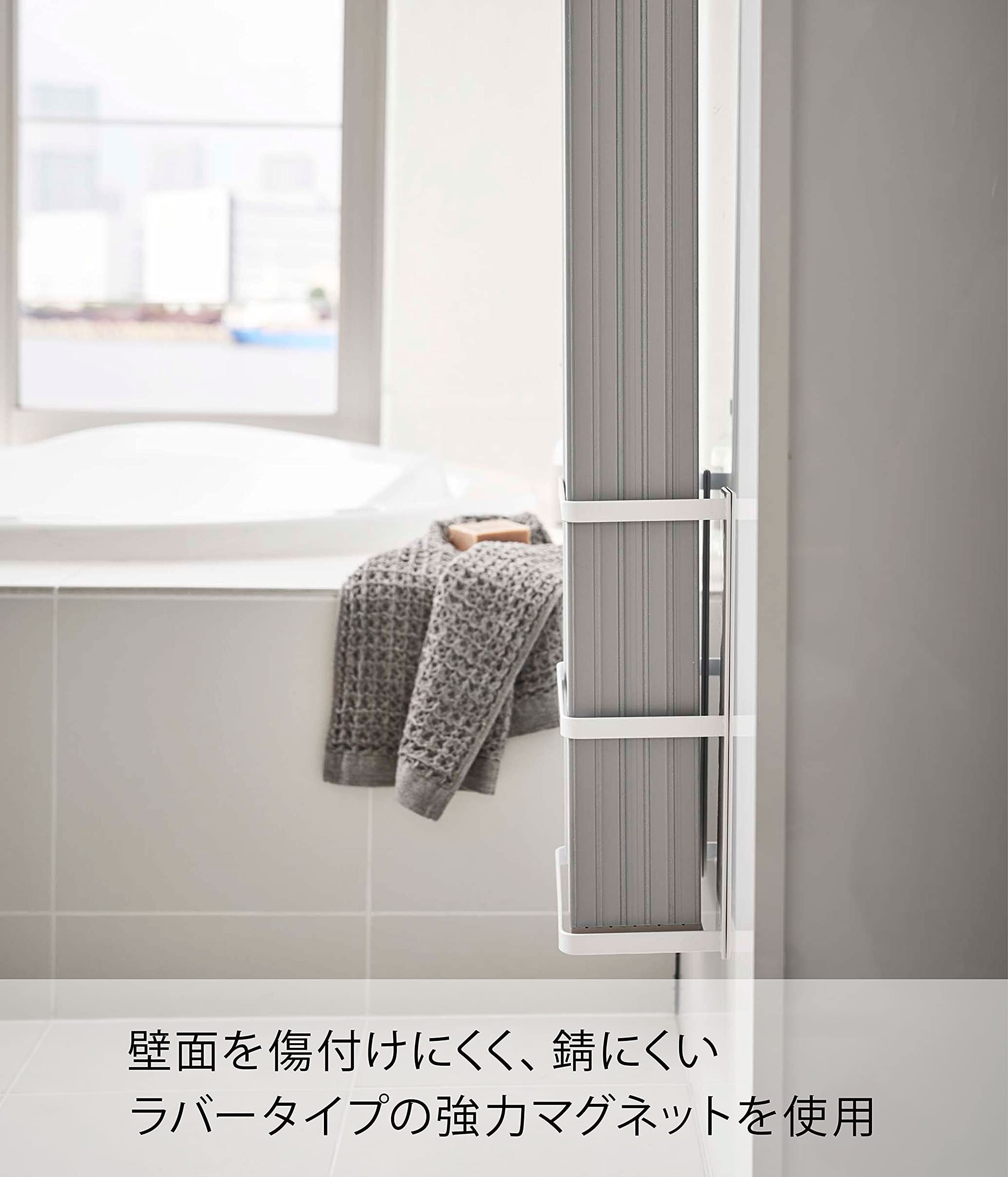 山崎実業(Yamazaki) マグネットバスルーム折り畳み風呂蓋ホルダー ホワイト 約W25XD12.5XH34cm ミスト 水切れが良い シャッター式タイプも収納可 4862