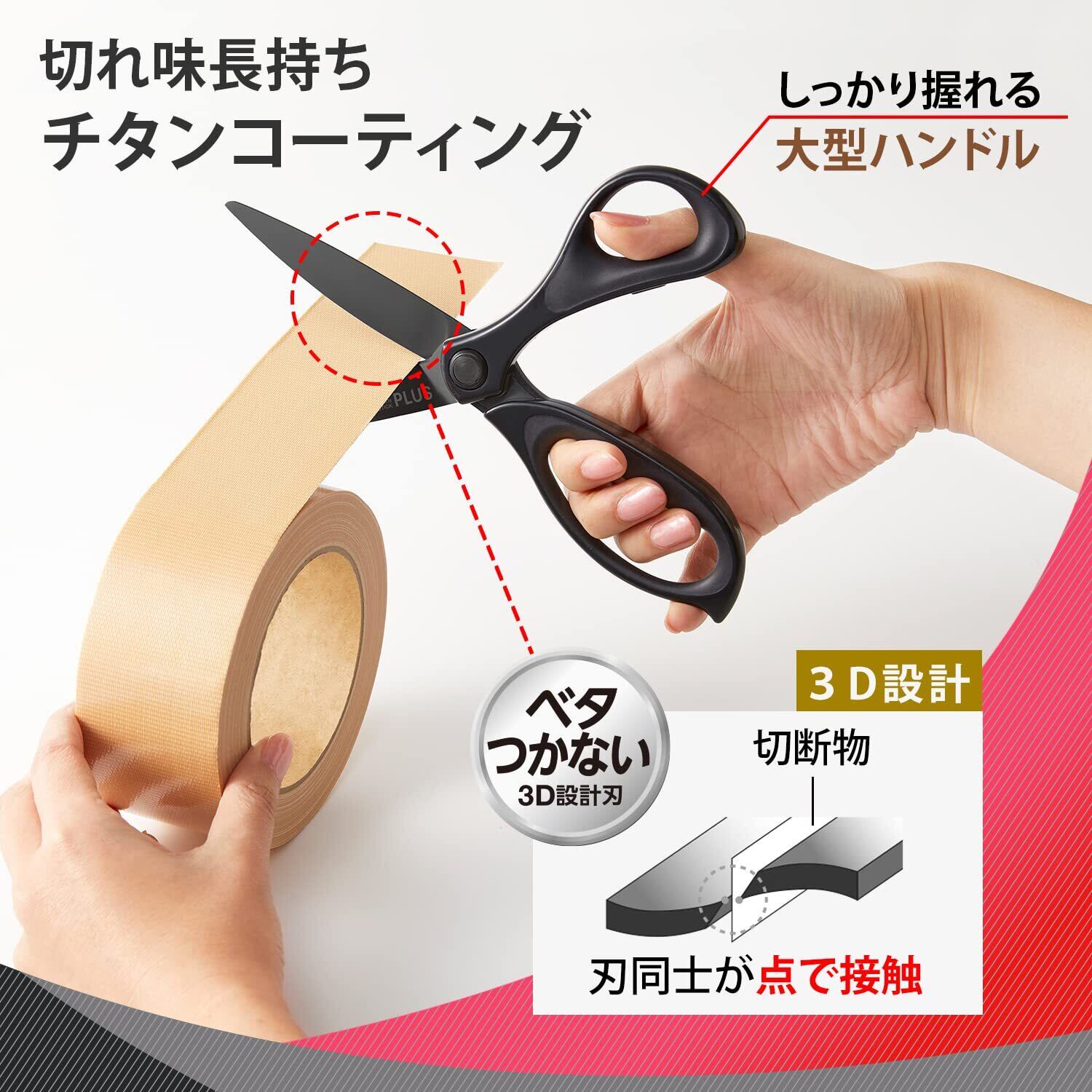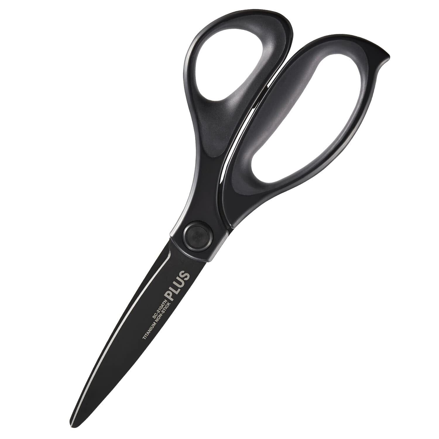 プラス はさみ フィットカットカーブ 30度 大型タイプ チタン3D刃 ベタつかない 軽い切れ味 段ボールも切れる ブラック SC-210ATN 35-237