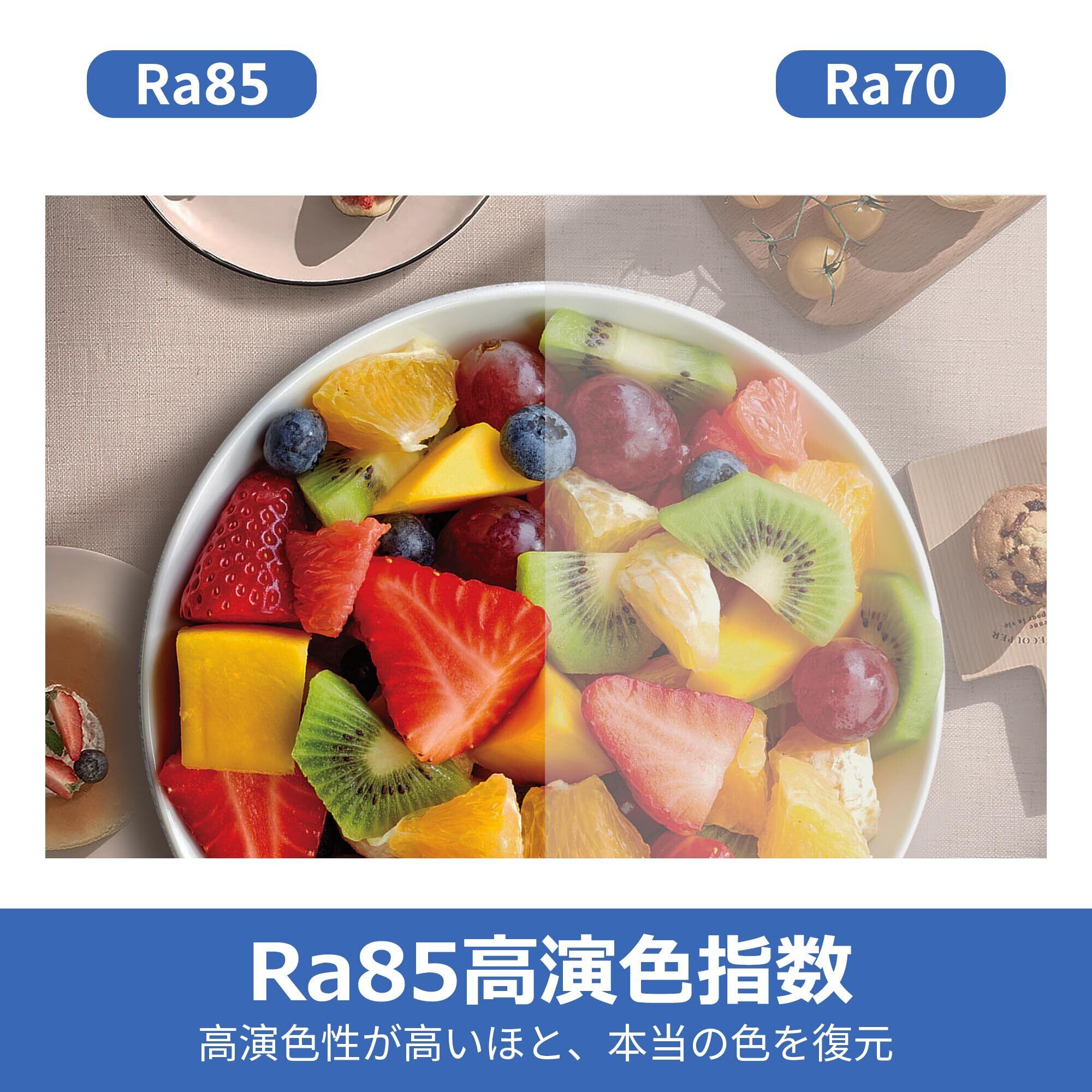 【優れた演色性、チラツキなし】:Ra 85以上に達したLEDなので、肌や物の色がより美しく、自然に再現できます。フリッカーがないので、体調に悪い影響を与えません。