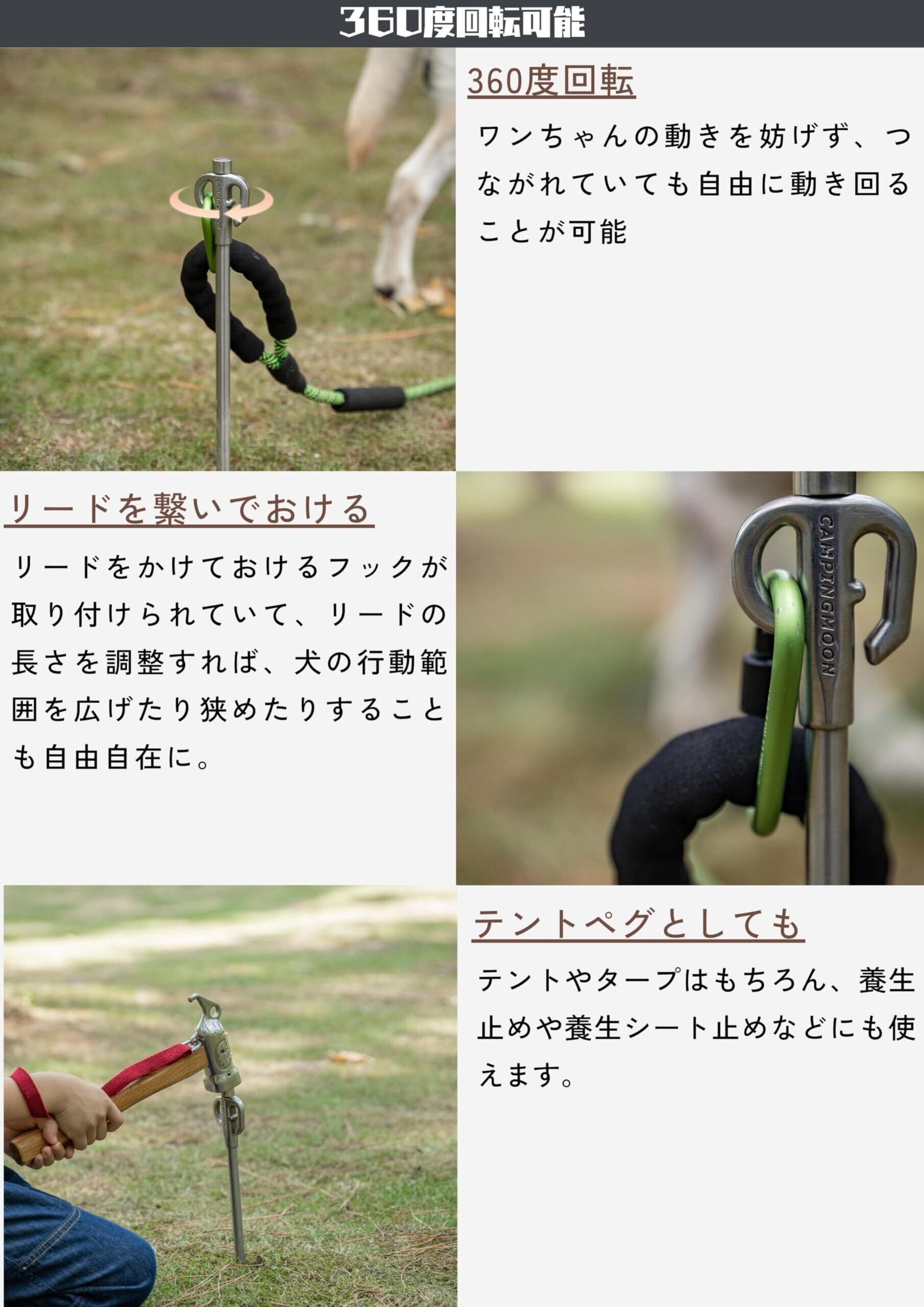 キャンピングムーン(CAMPING MOON) 係留用ポール 係留用ペグ ペット 大型犬用 ステンレス鋼420製 2点セット 30cm 固い地面にも打ち込める 360度回転 K45-30-2P