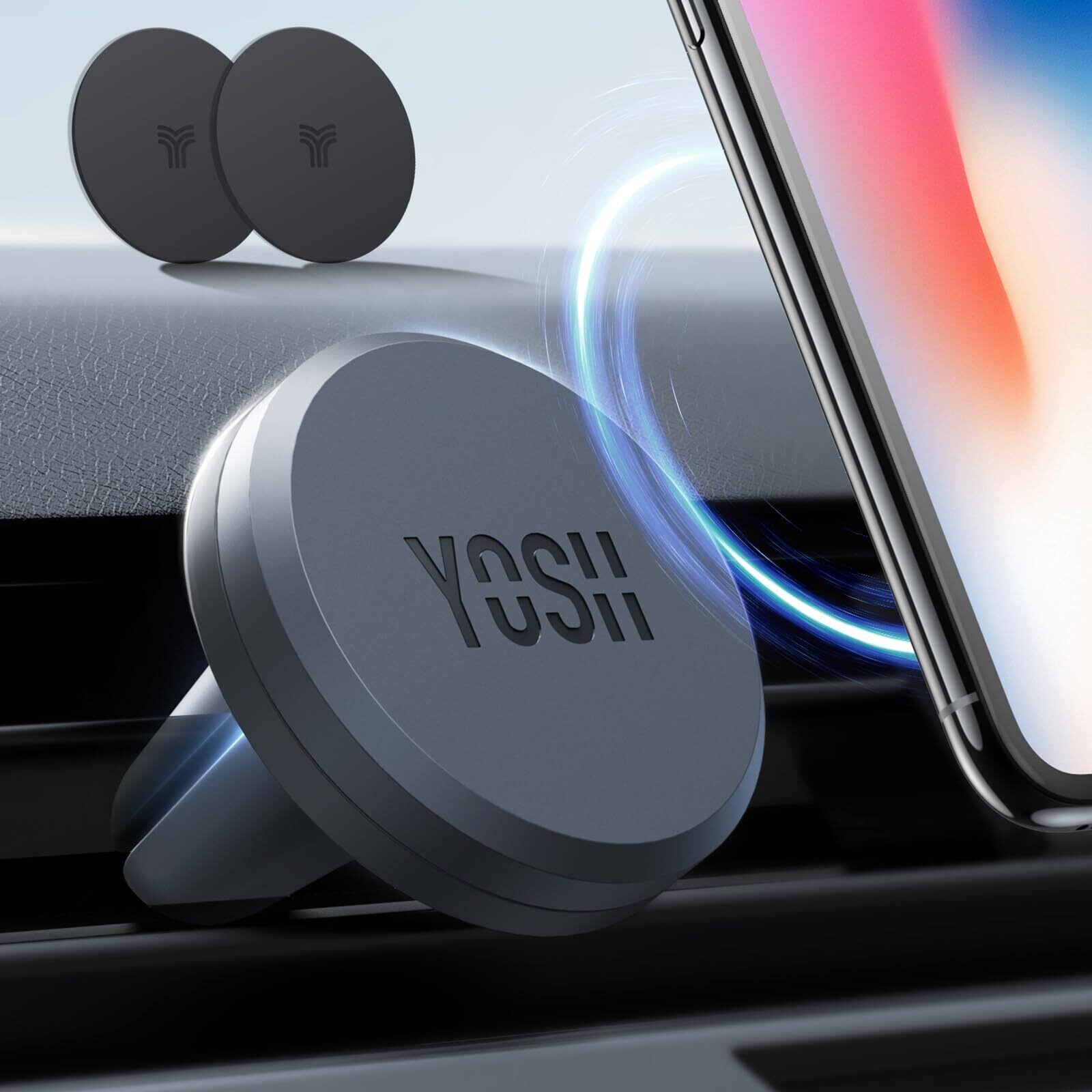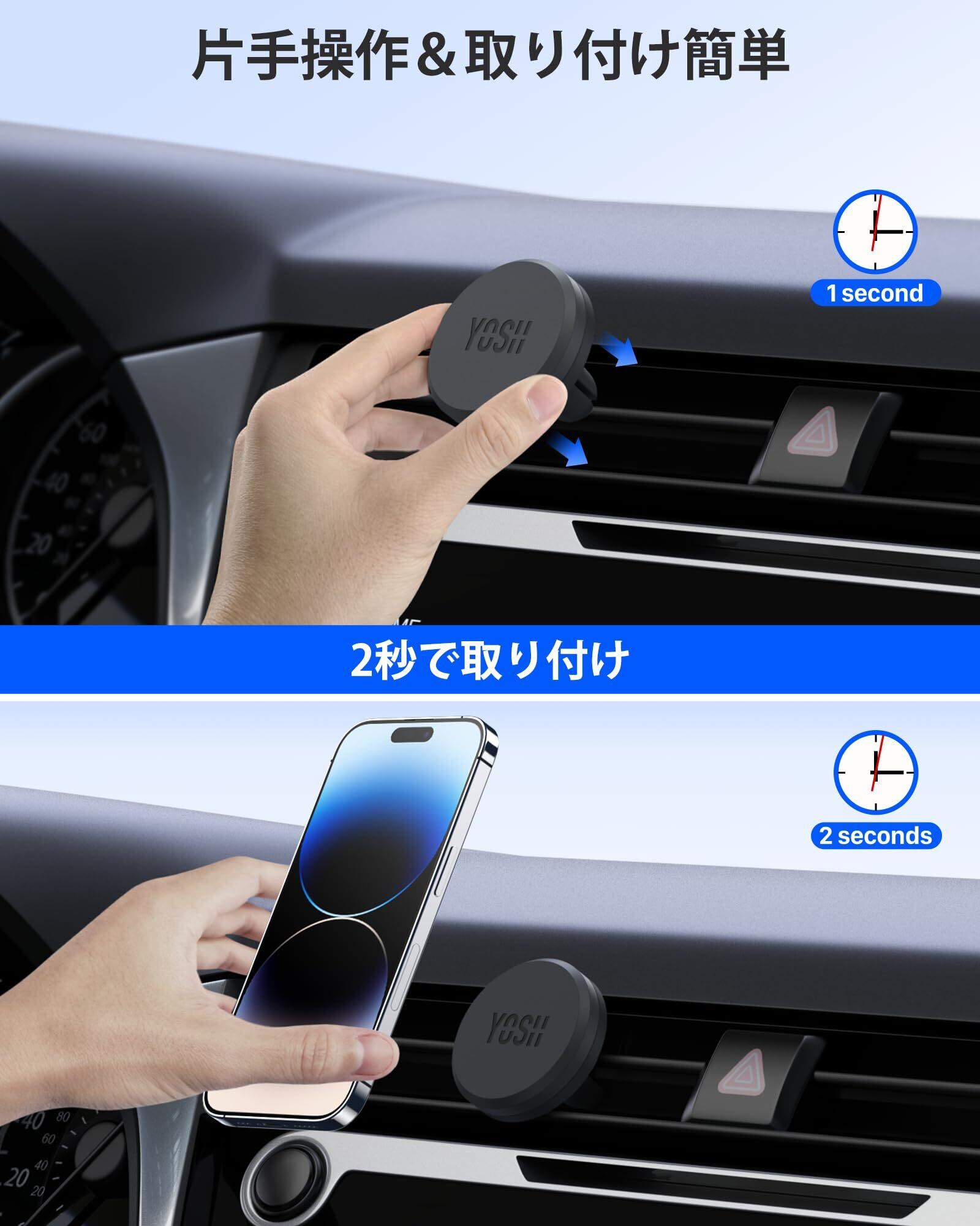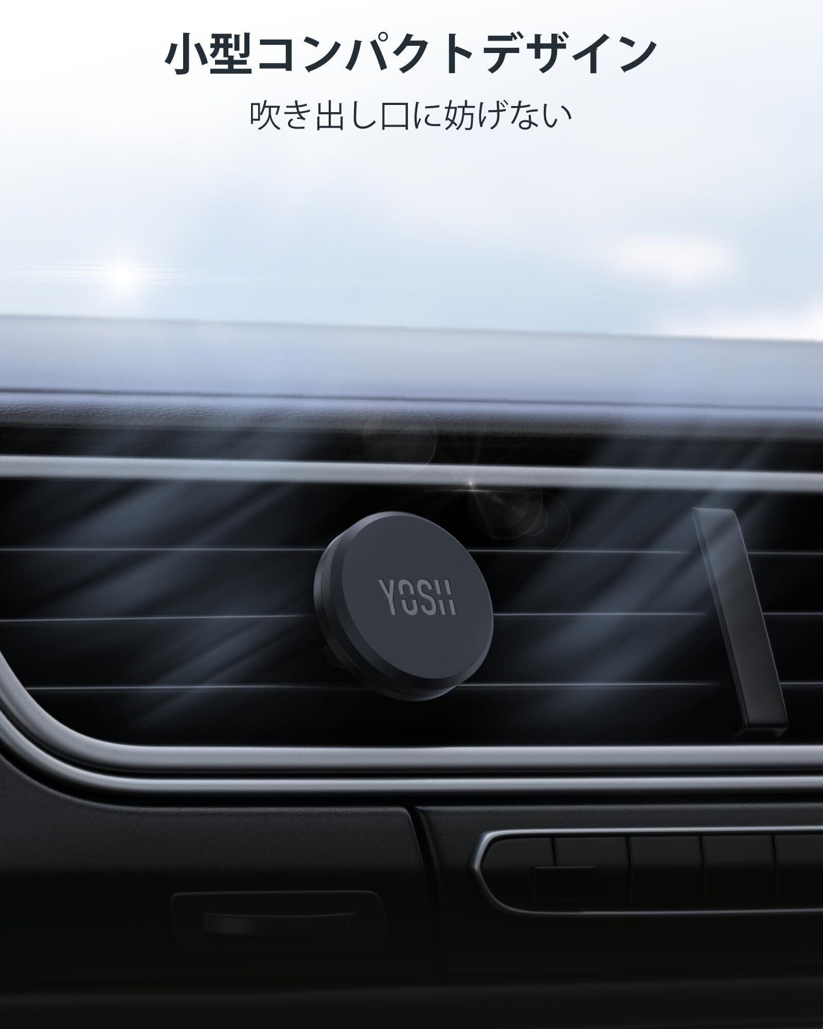 【コンパクト】YOSH スマホホルダー 車 マグネット エアコン 車 スマホスタンド 小型 吹き出し口に妨げない 磁力強化 しっかり固定 軍用シリコン素材 車載スマホホルダー マグネット 磁石 取付簡単 ブラック 黒 MagSafe非対応 iPhone/AQUOS/ARROWS/Pixel/Xperia/Galaxyに対応